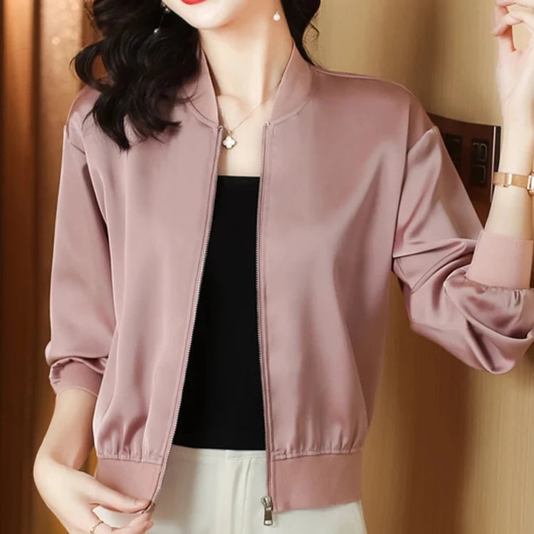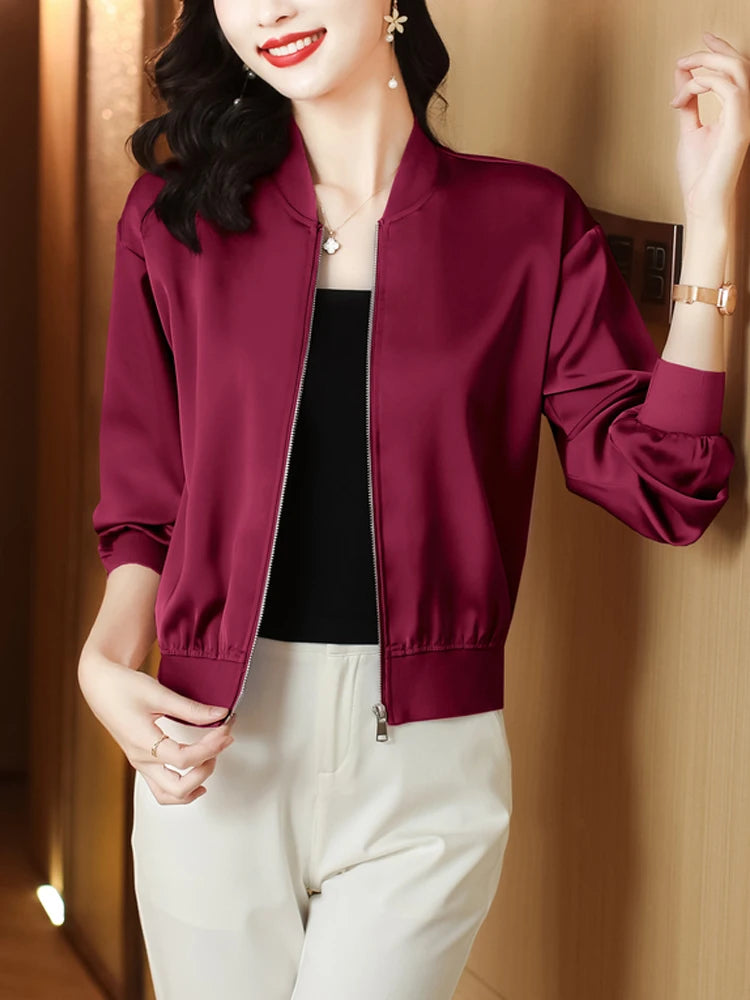 Dámský stylový jednobarevný bomber ve více barvách na výběr.