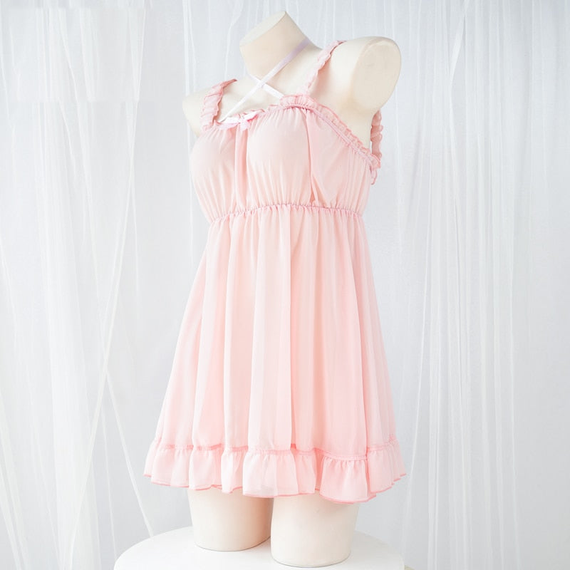 Dámský stylový kostým Lolita v růžové barvě. Vhodné na oslavy a Halloween.