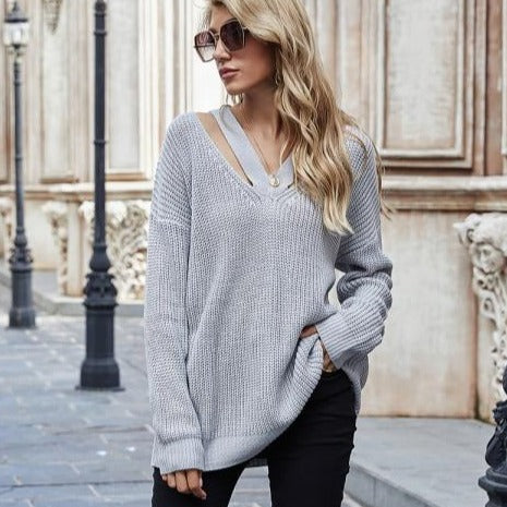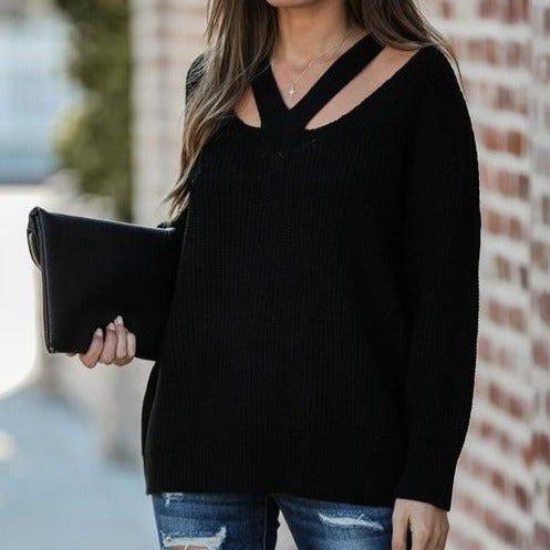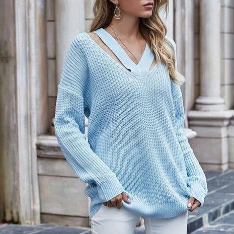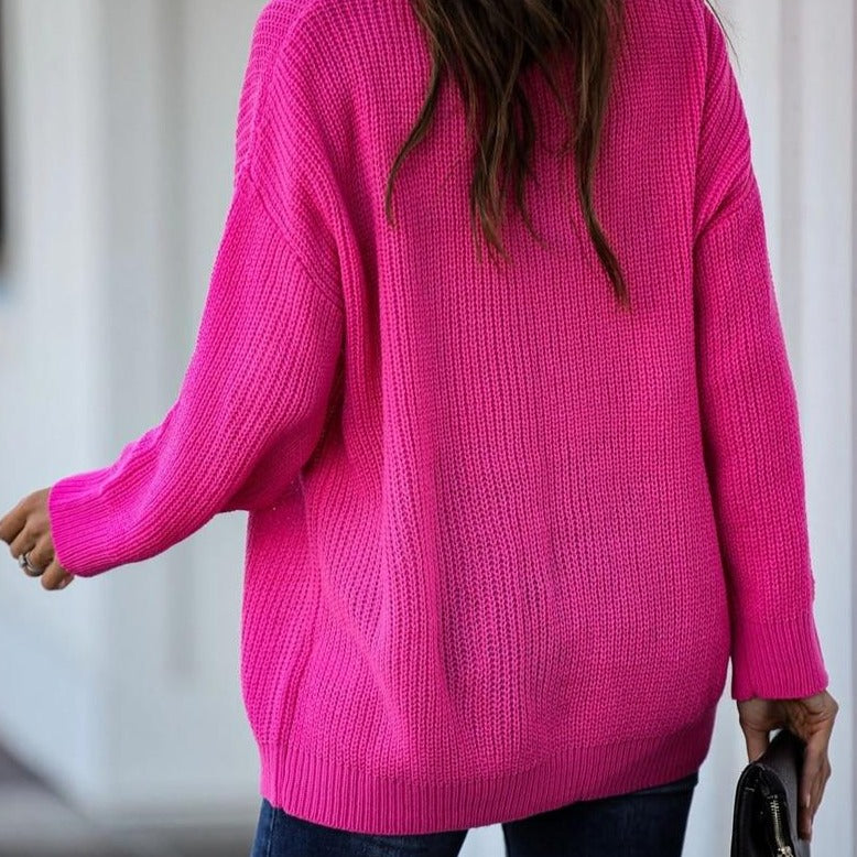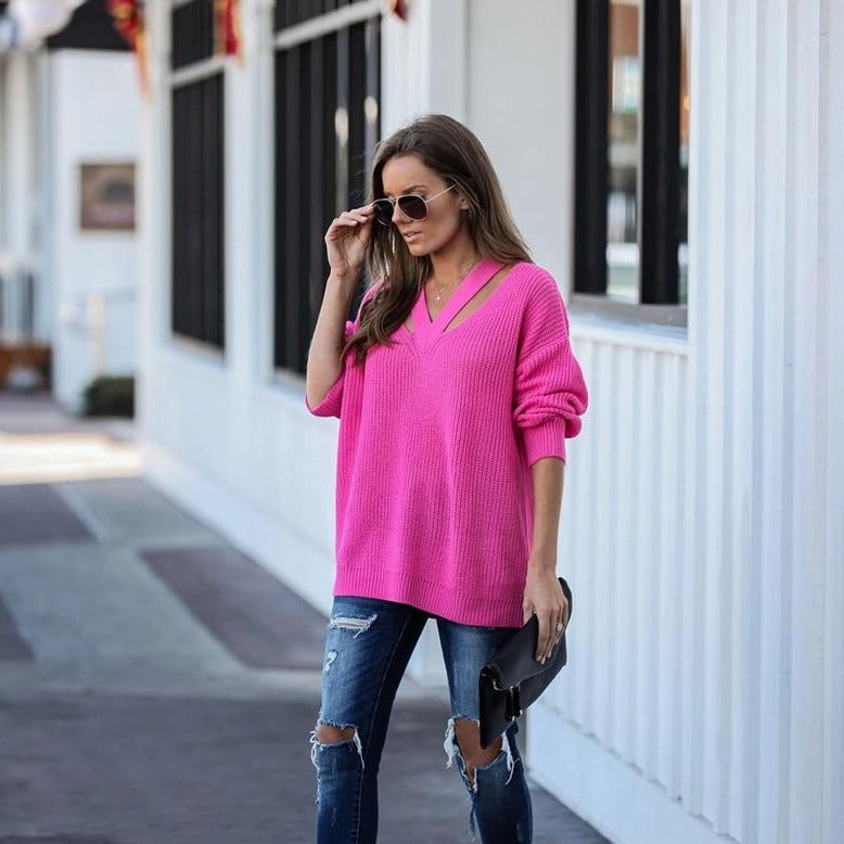 Dámský stylový oversized jednobarevný svetr s detailem na dekoltu. Více barev na výběr.