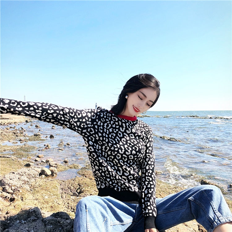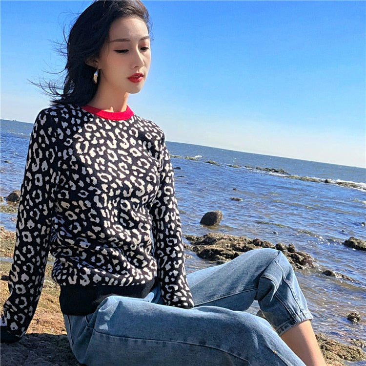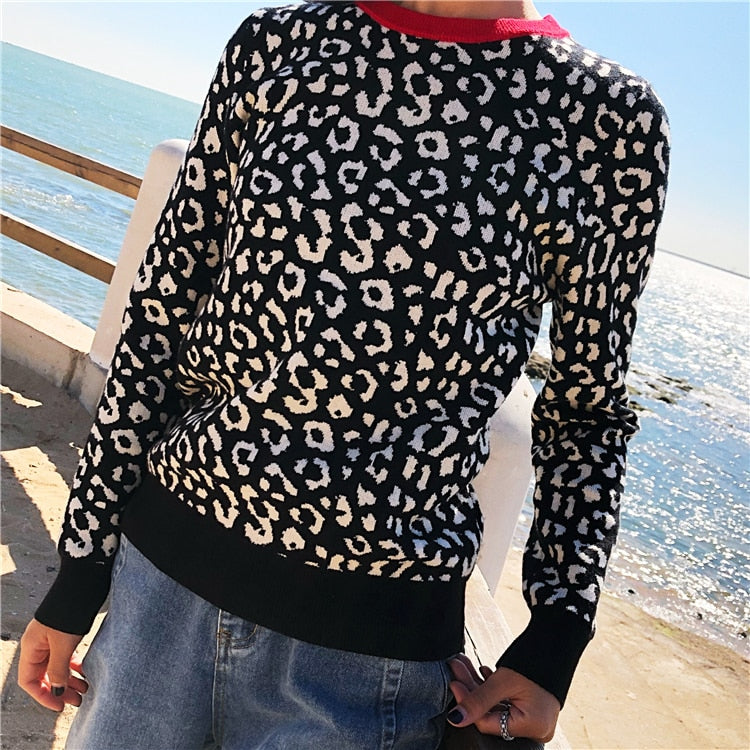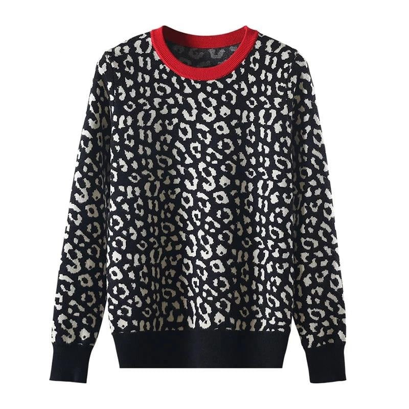 Dámský pletený svetr s leopardím potiskem