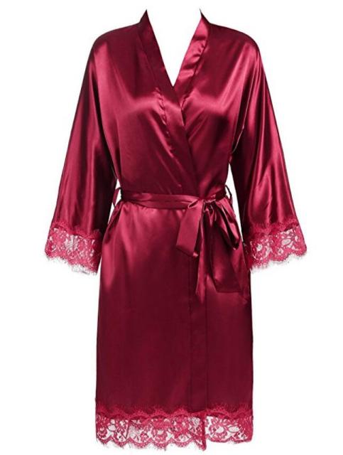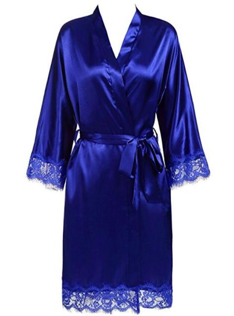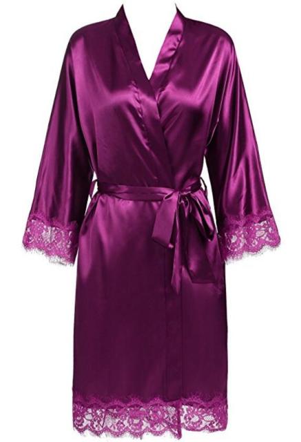 Dámský saténový župan s krajkou v několika elegantních barevných variantách s páskem.