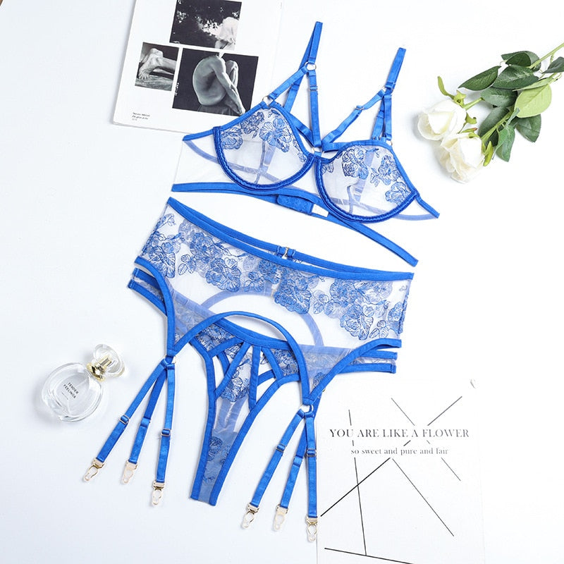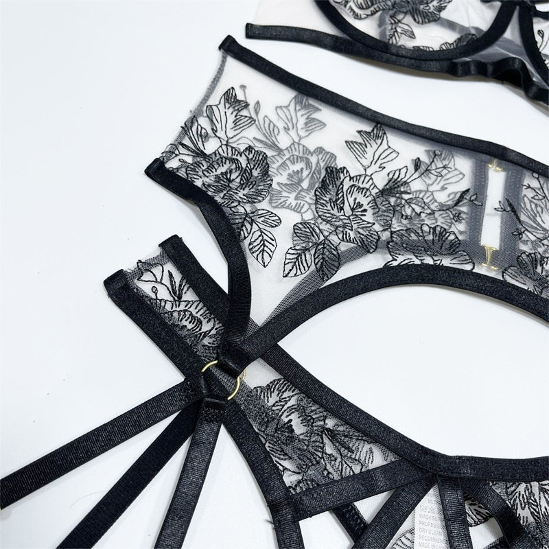 Dámský sexy set spodního prádla s podvazkovým pásem se vzorem květin. Více barev na výběr.