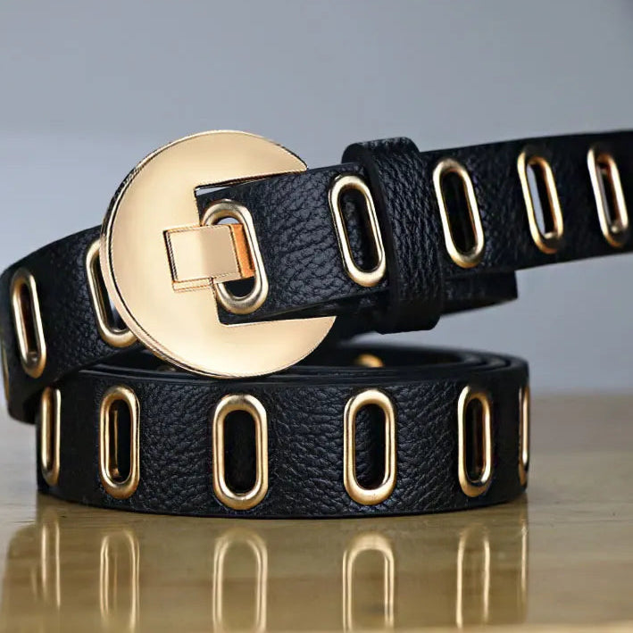Dámský stylový pásek se zlatými dírami. Více barev na výběr.