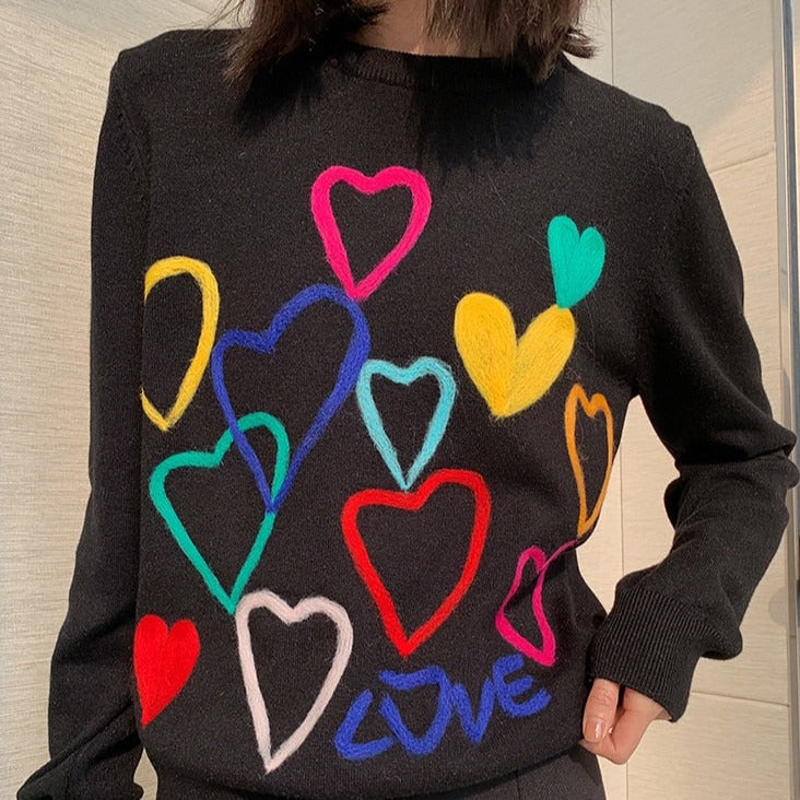 Dámský pohodlný svetr se srdíčky na předku. Více barev na výběr.