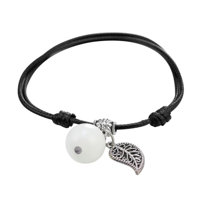 Svítící dámský kotníkový náramek v černé a červené barvě s listem.