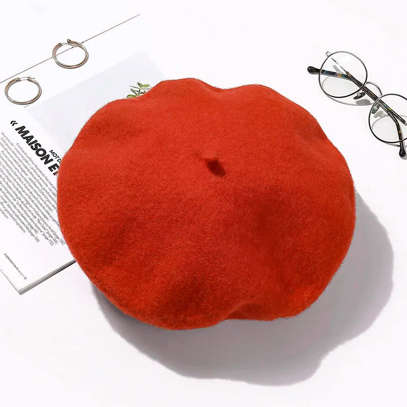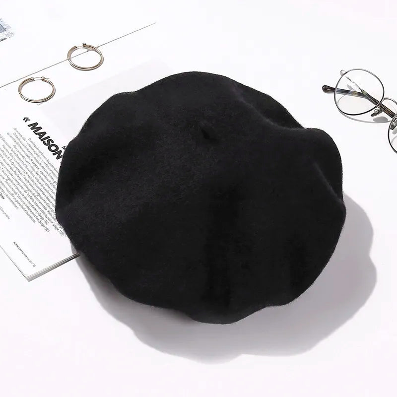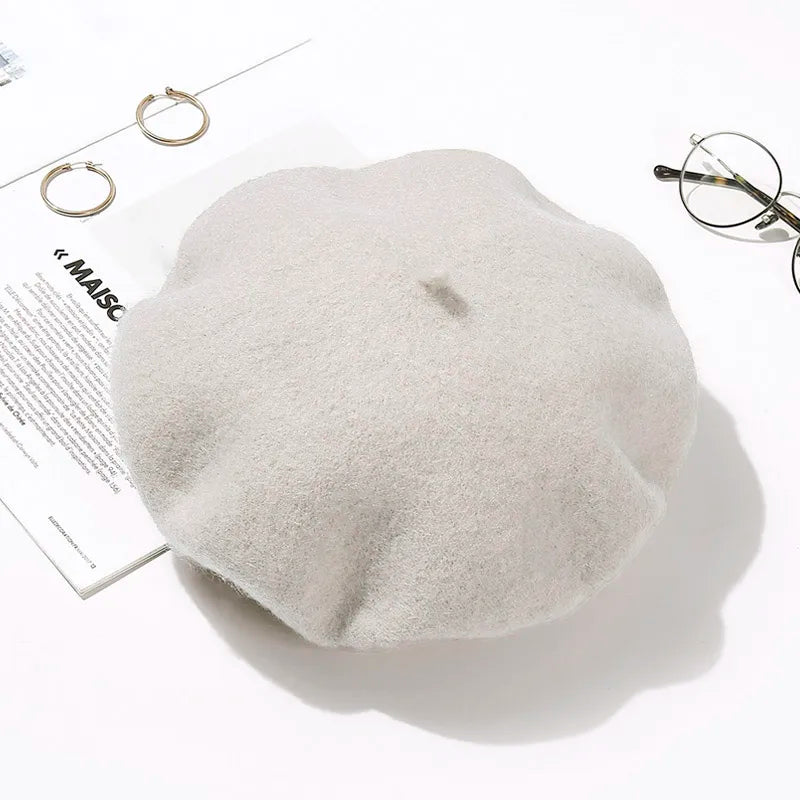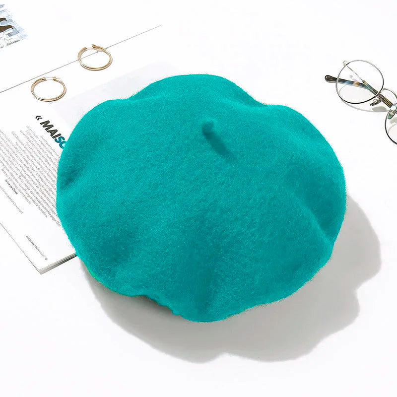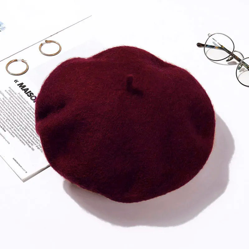 Dámský jednobarevný vlněný beret ve více stylech na výběr.