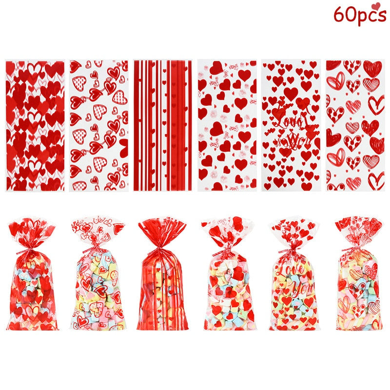 Dárkové tašky se vzory srdíček. Více druhů na výběr. Balení obsahuje 60 ks.