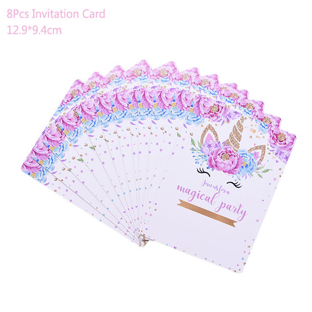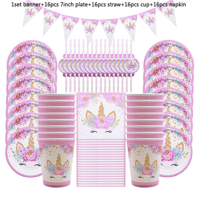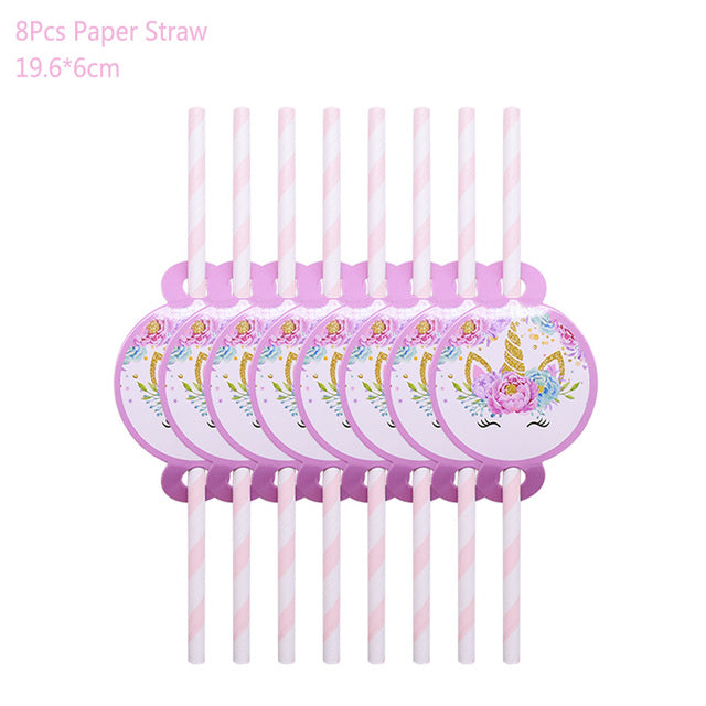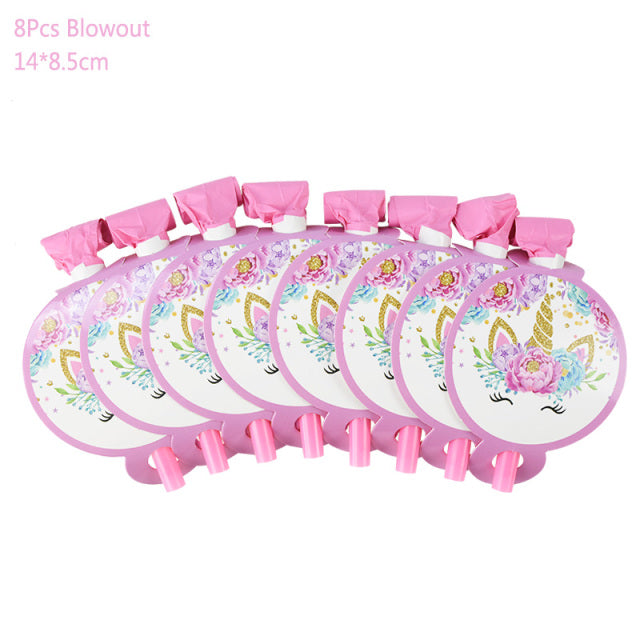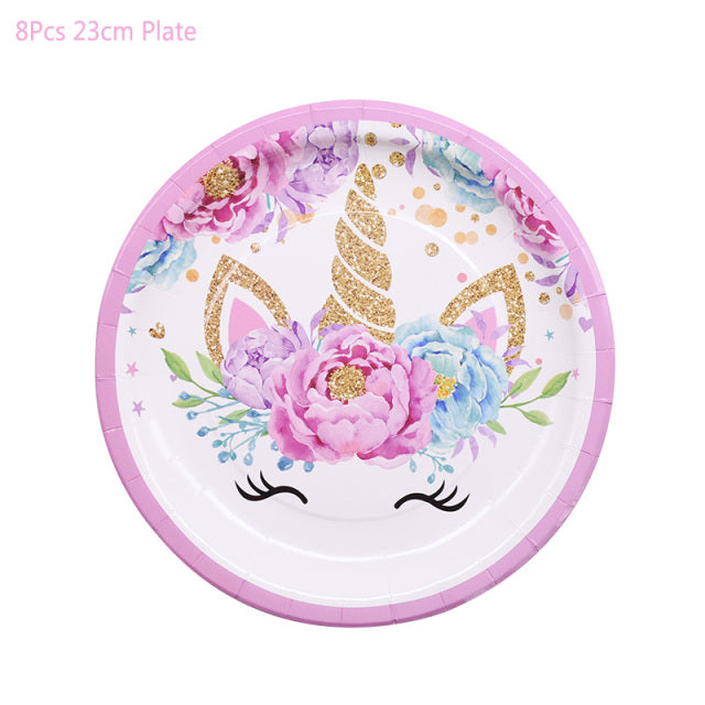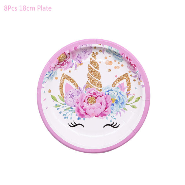Dekorační set pro 8 osob na oslavy se vzorem jednorožce. Výběr z více druhů.