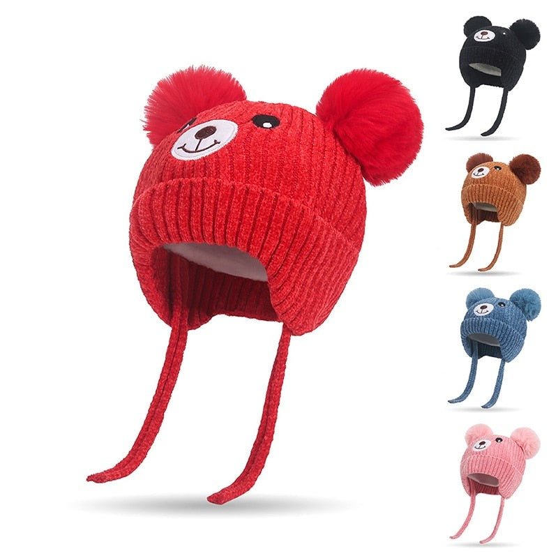 Dětská pohodlná čepice s medvídkem. Více barev na výběr. Pro děti 3 měsíce až 5 let.