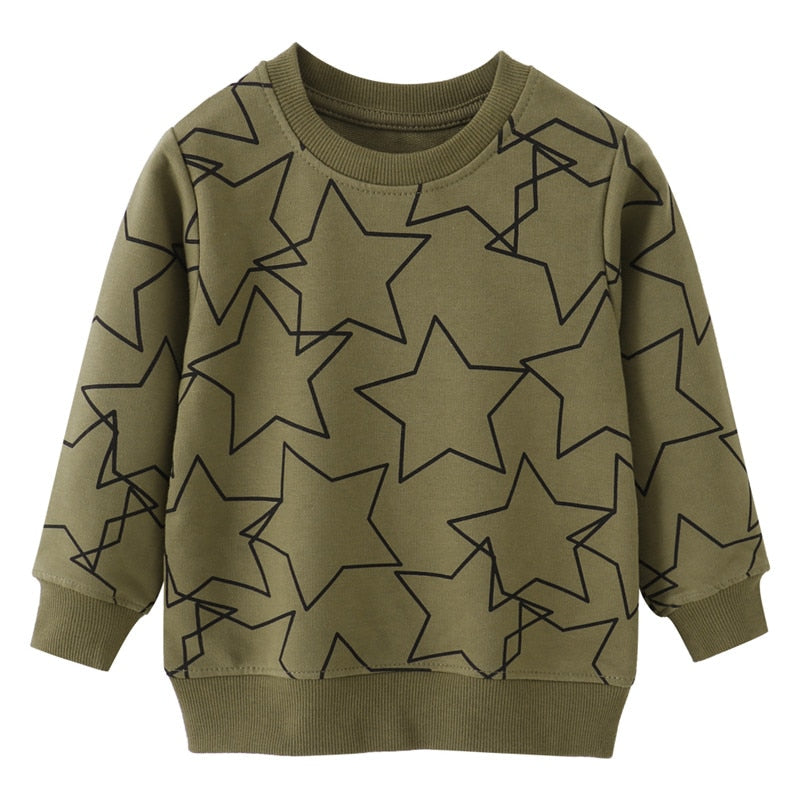 Dětská mikina s hvězdičkami, dinosaury a dalšími potisky. Více barev na výběr.
