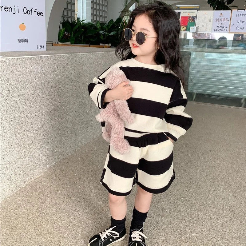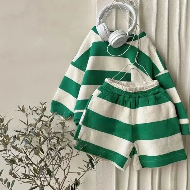 Dětská pohodlná pruhovaná tepláková souprava s kraťasy. Více barev na výběr.