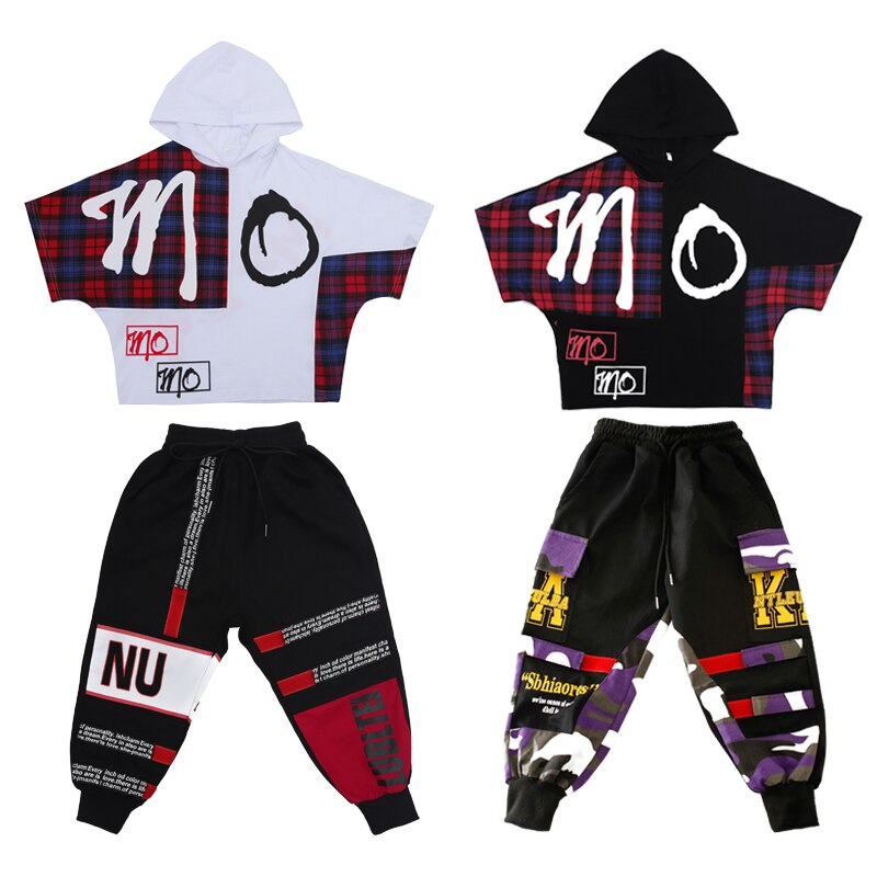 Dětské stylové a originální oblečení na hip hop tance v černé a bílé barevné variantě s různými potisky.