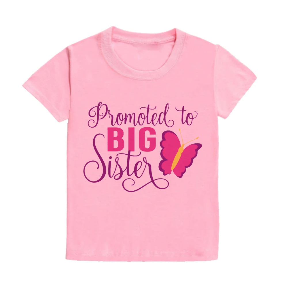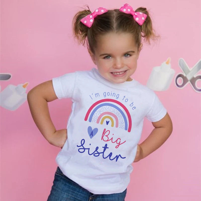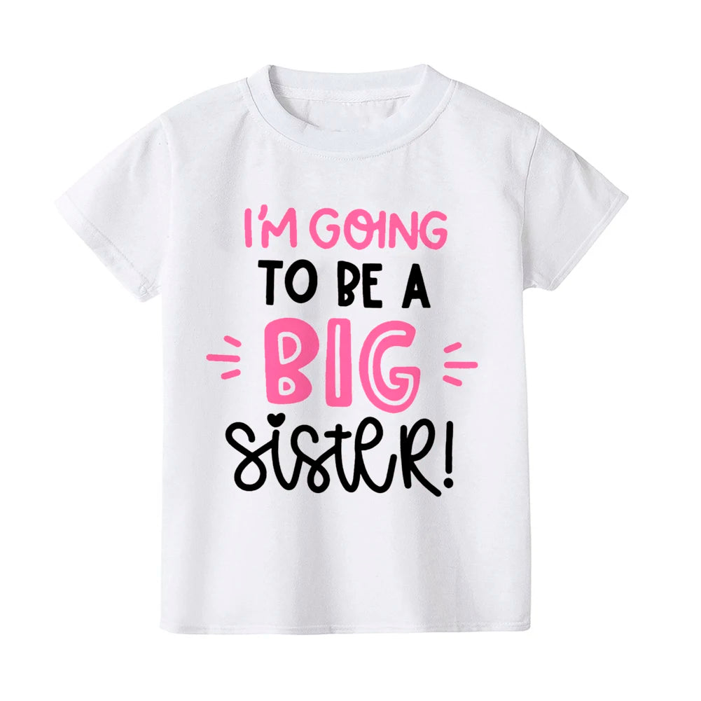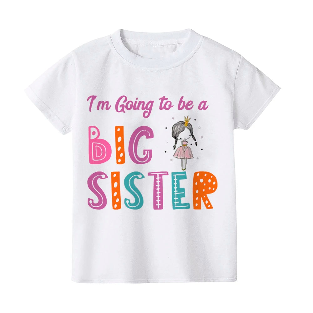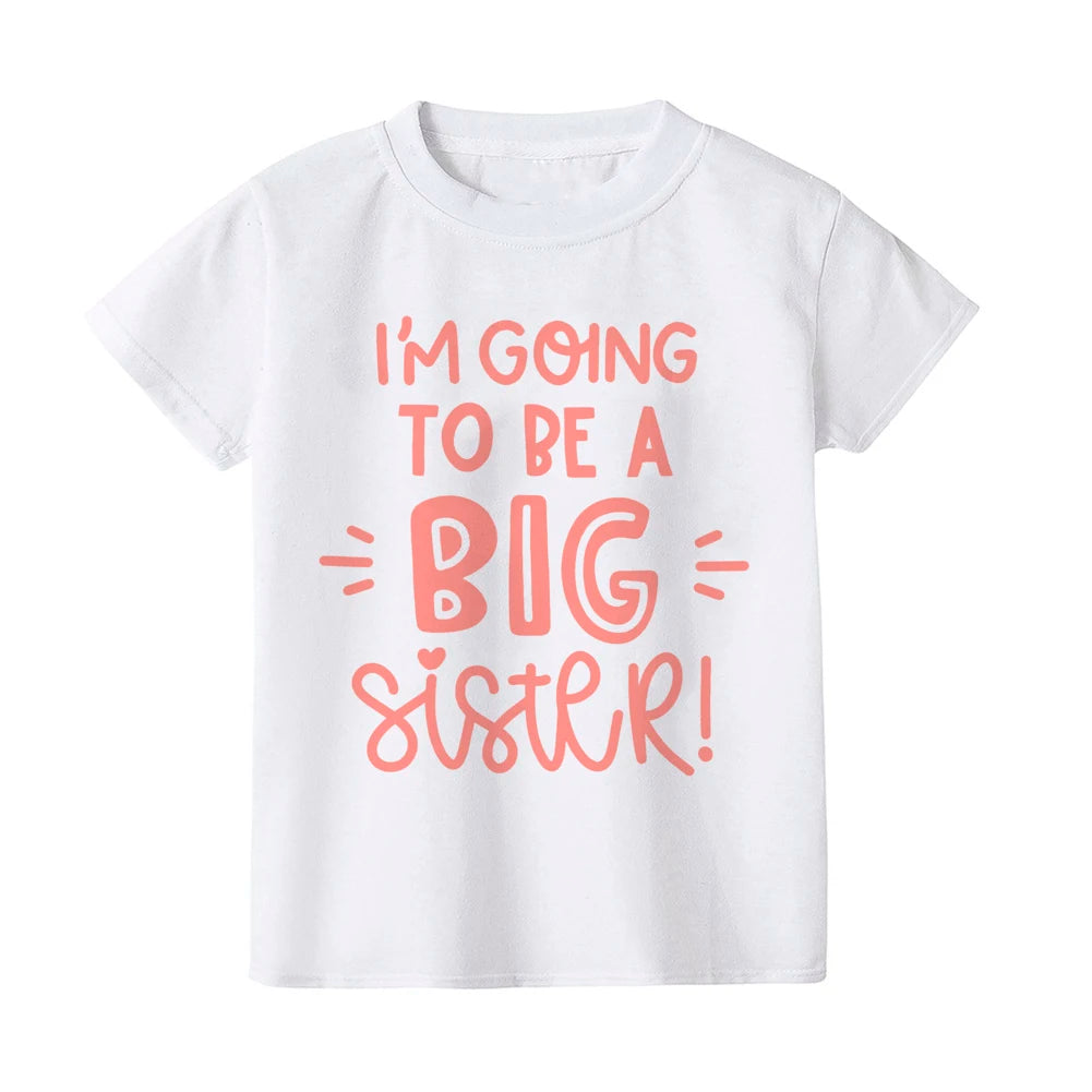 Dětské stylové triko s nápisem Big Sister a krátkým rukávem ve více stylech a barvách.