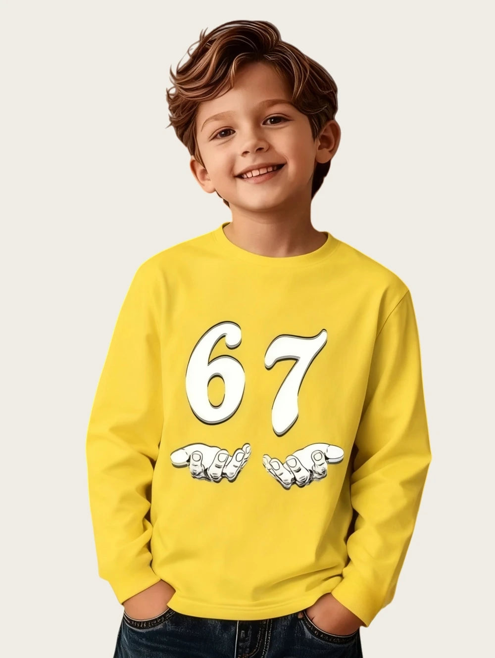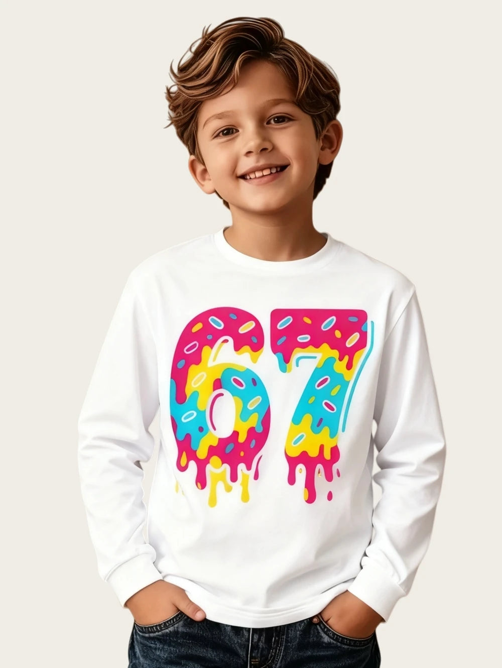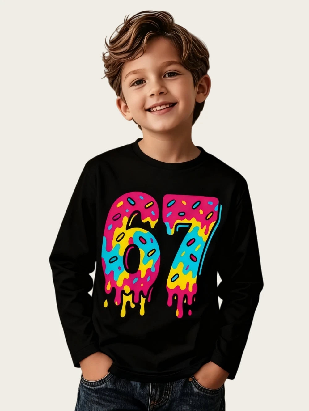 Dětské stylové triko s potiskem 67 a dlouhým rukávem. Na výběr z více druhů.
