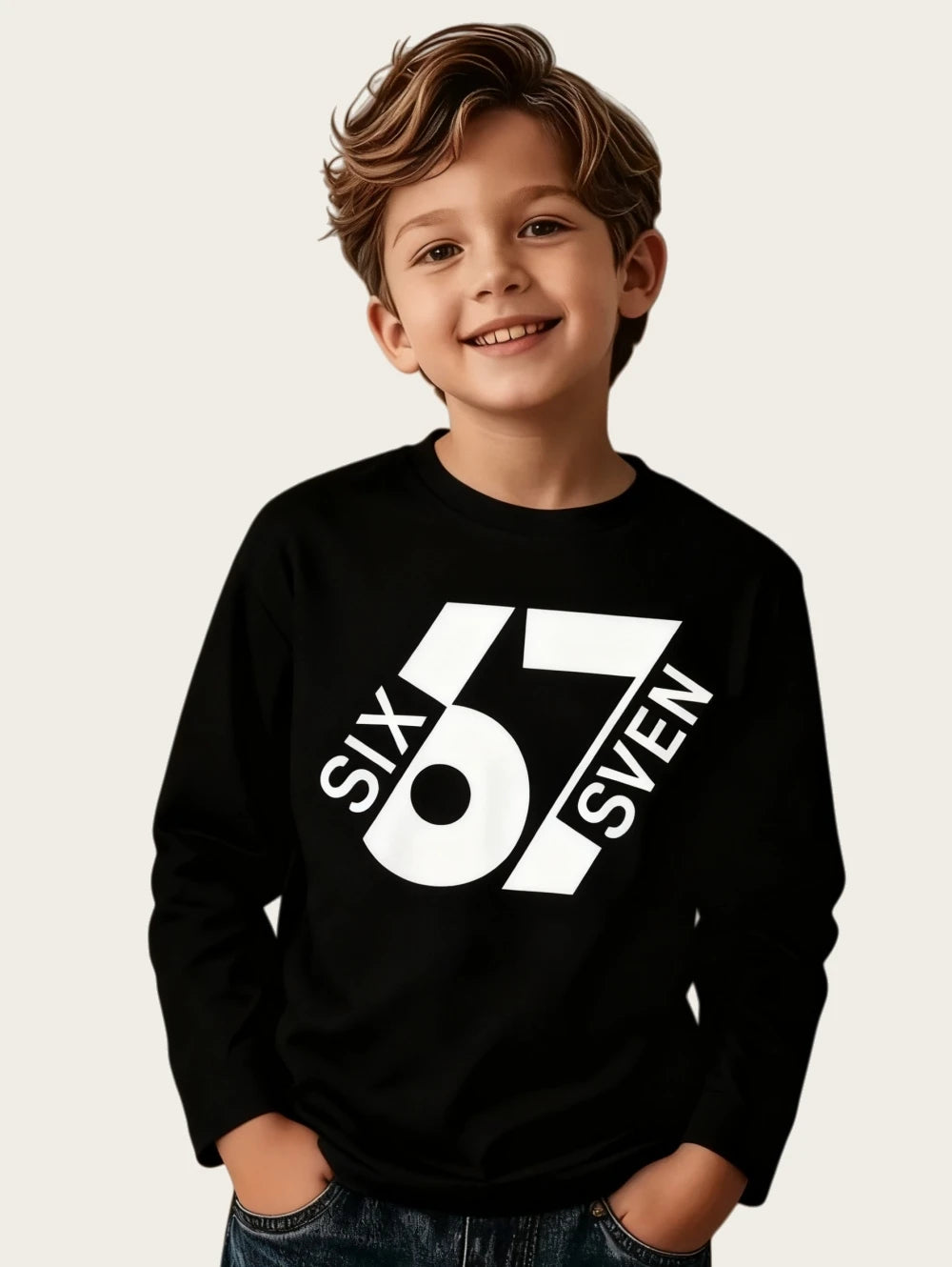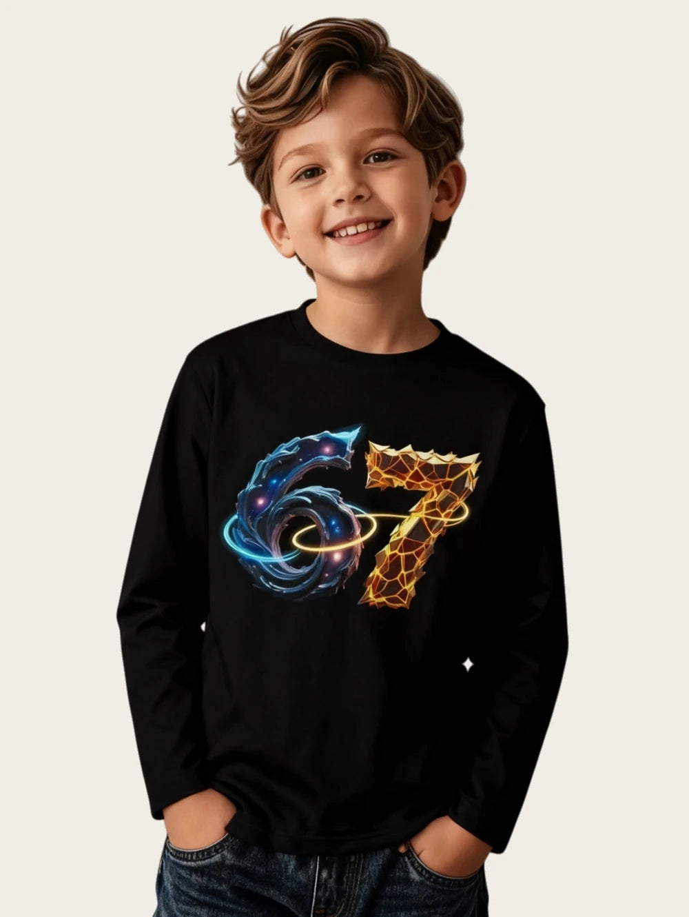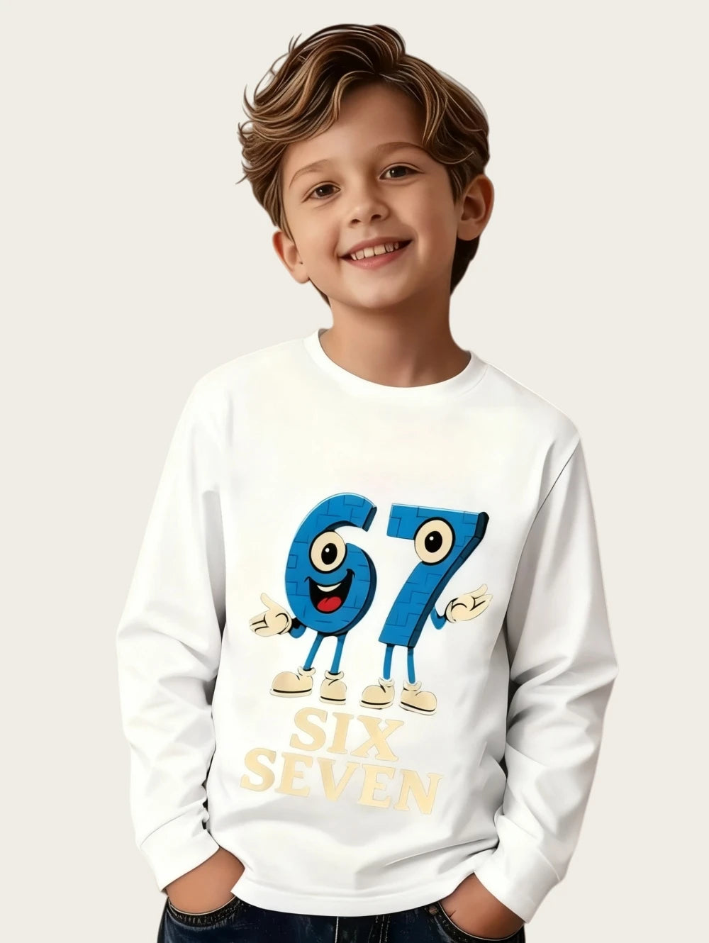 Dětské stylové triko s potiskem 67 a dlouhým rukávem. Na výběr z více druhů.