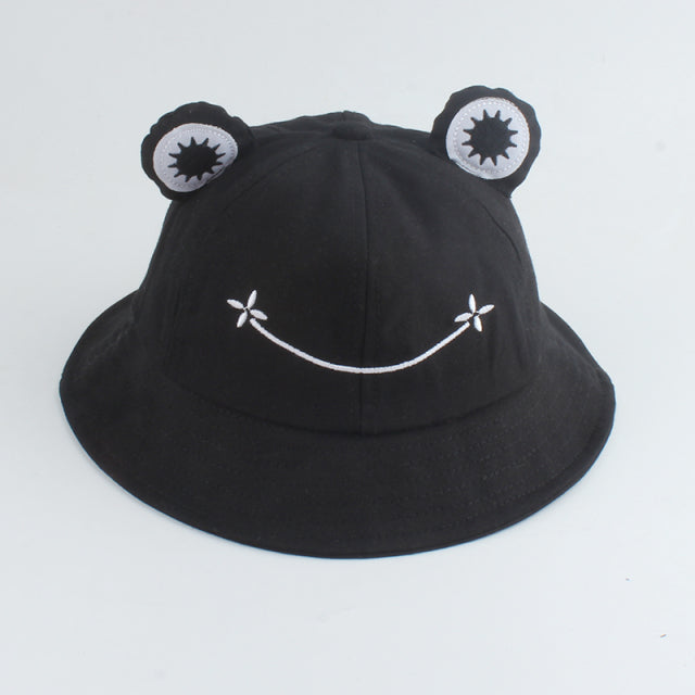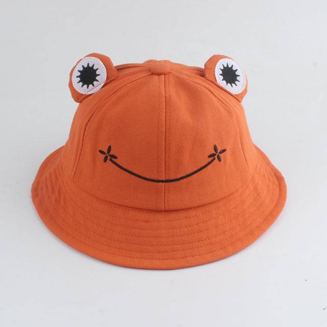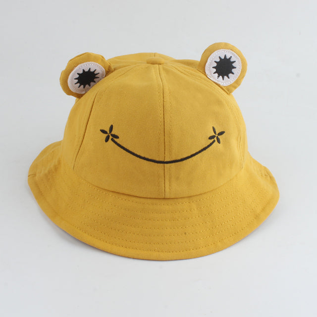 Dětský bavlněný klobouk v designu žabky v různých barevných variantách.