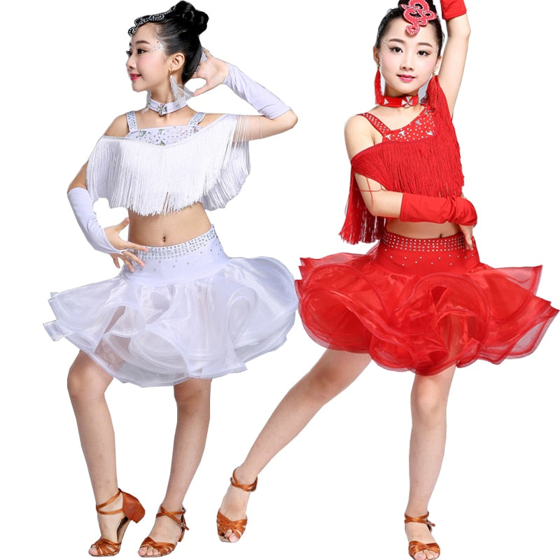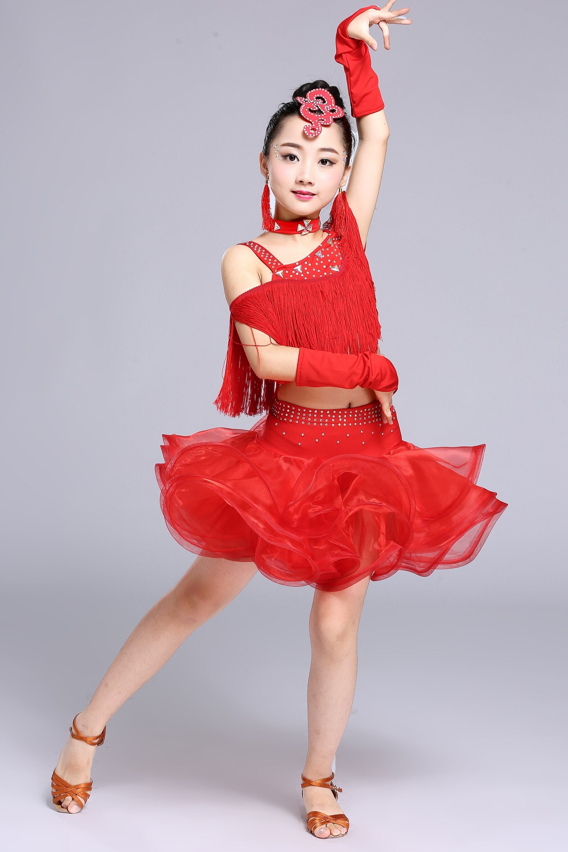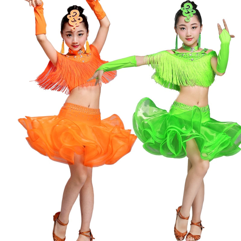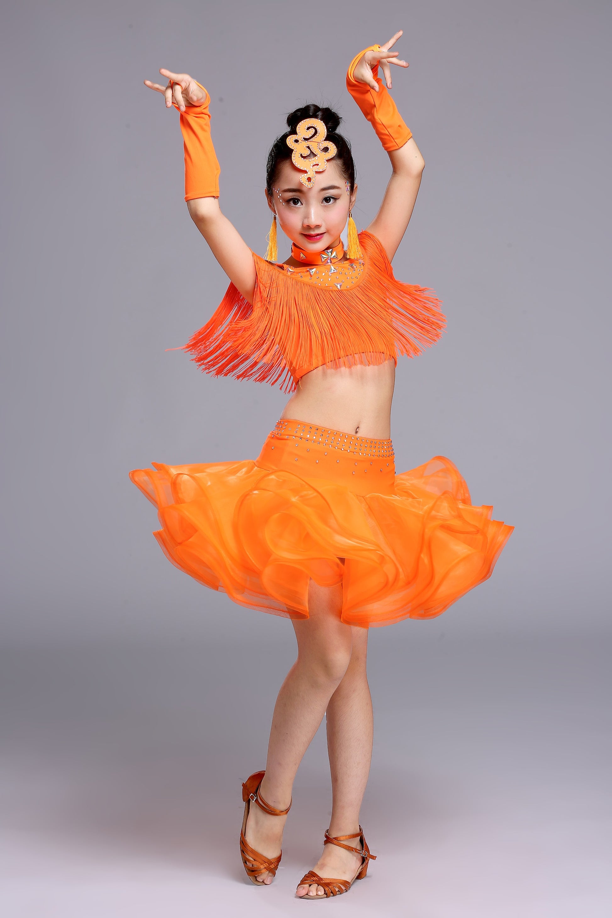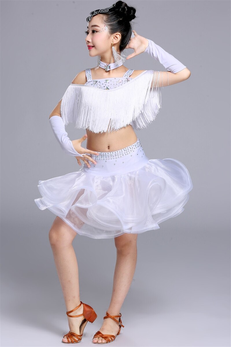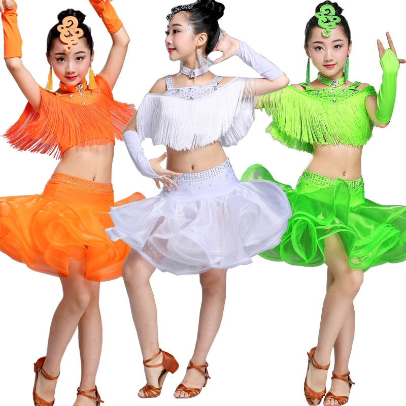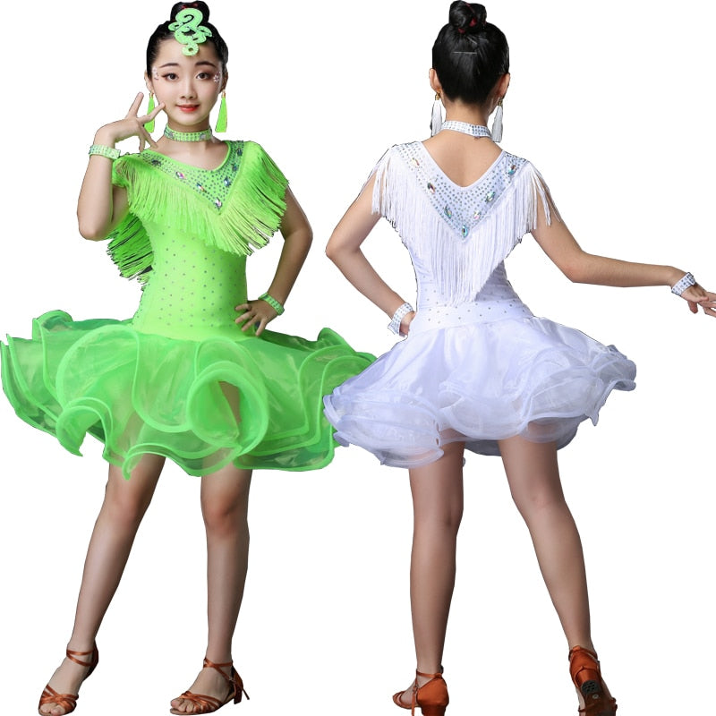 Dětský elegantní kostým na tance s třásněmi ve více barvách na výběr.