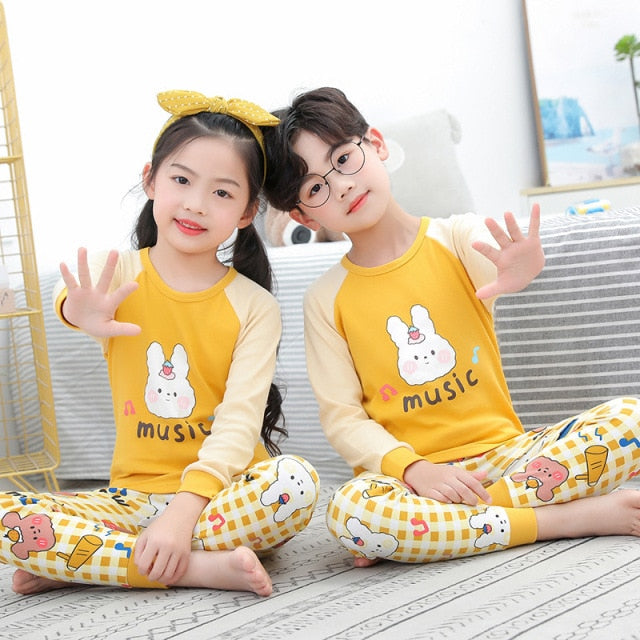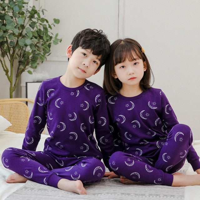 Roztomilý teplý a pohodlný pyžamový set pro děti v různých barevných variantách.