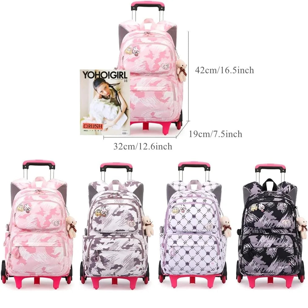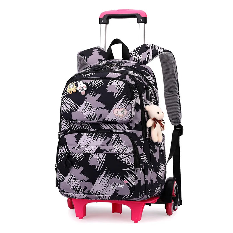 Dětský prostorný školní batoh se vzorem na kolečkách (2 nebo 6 koleček) ve více barvách na výběr.