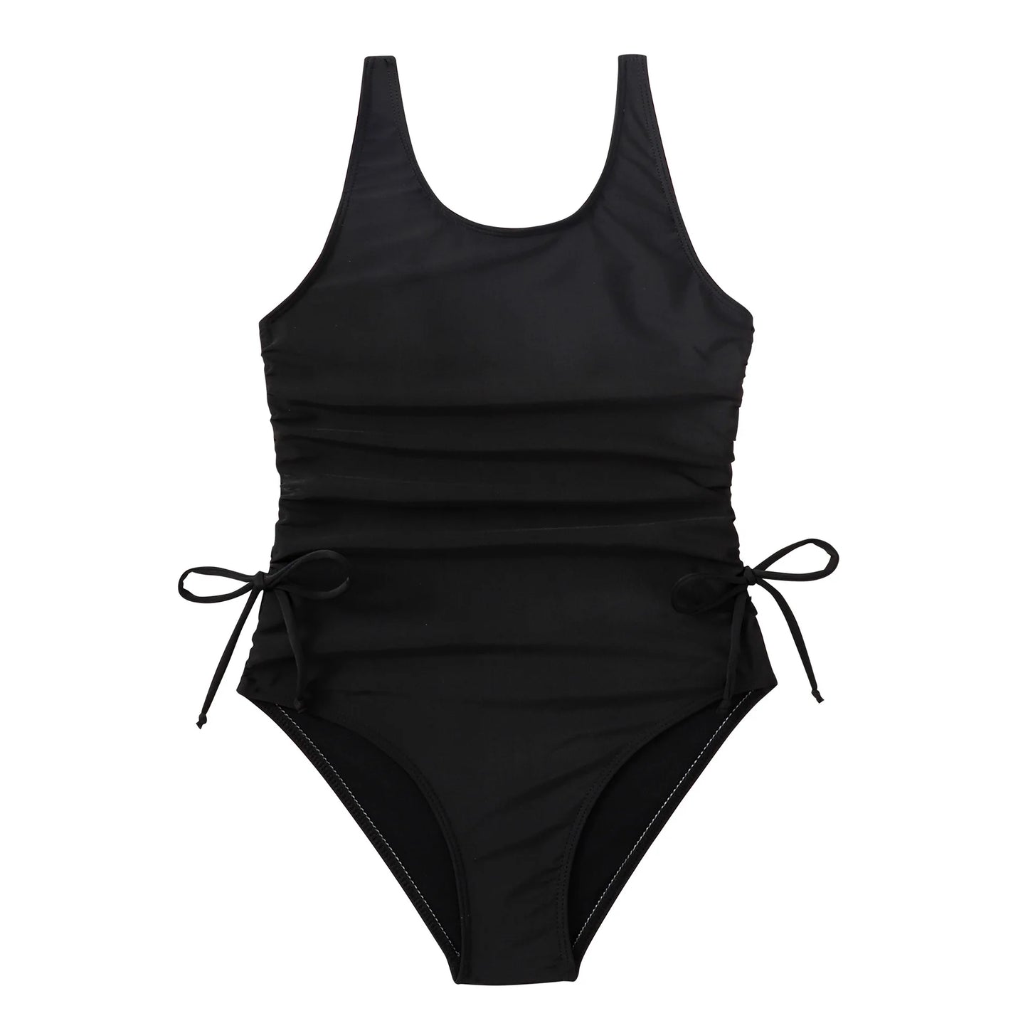 Dívčí jednodílné černé plavky bez vzoru. Více barev na výběr.