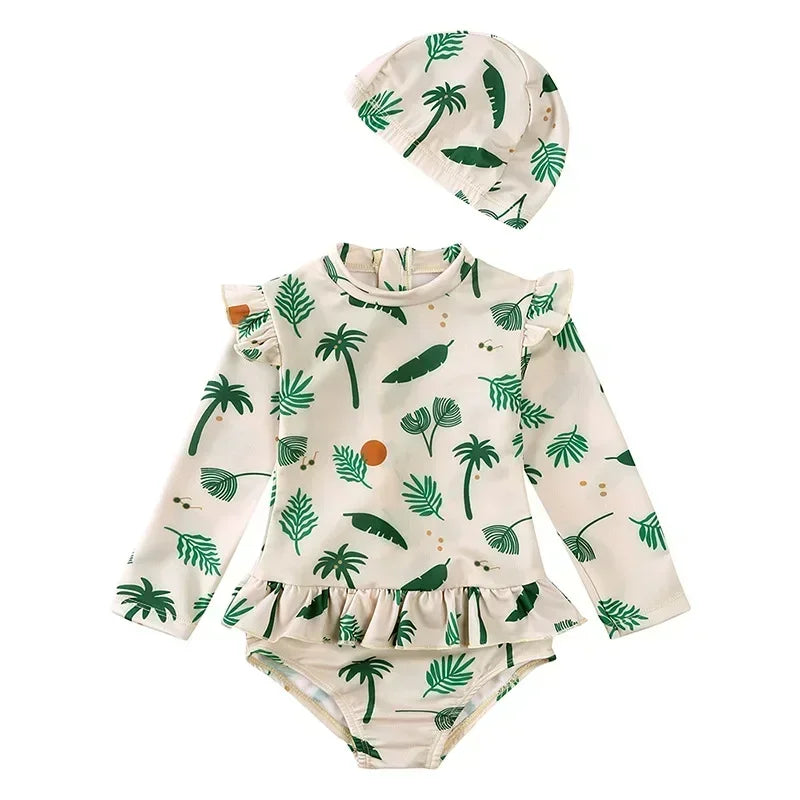 Dívčí jednodílné plavky s volánkem se vzorem. Více barev na výběr.