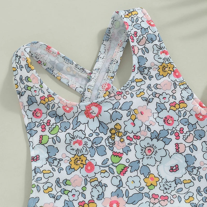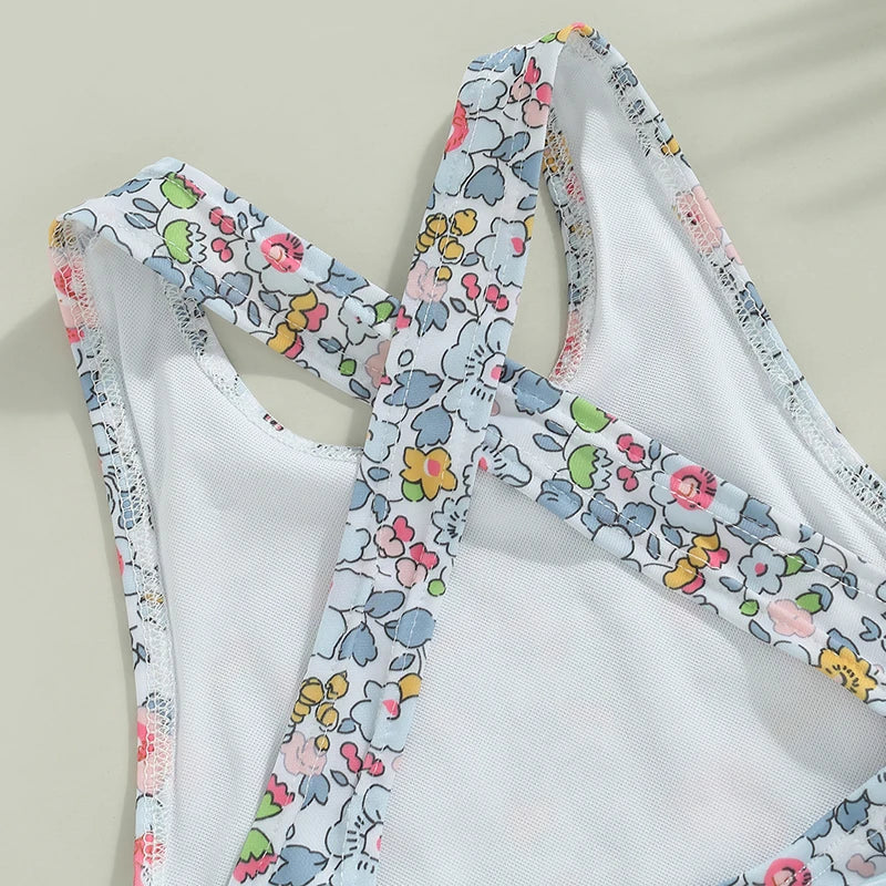 Dívčí roztomilé jednodílné plavky s volánky se vzorem. Více barev na výběr.
