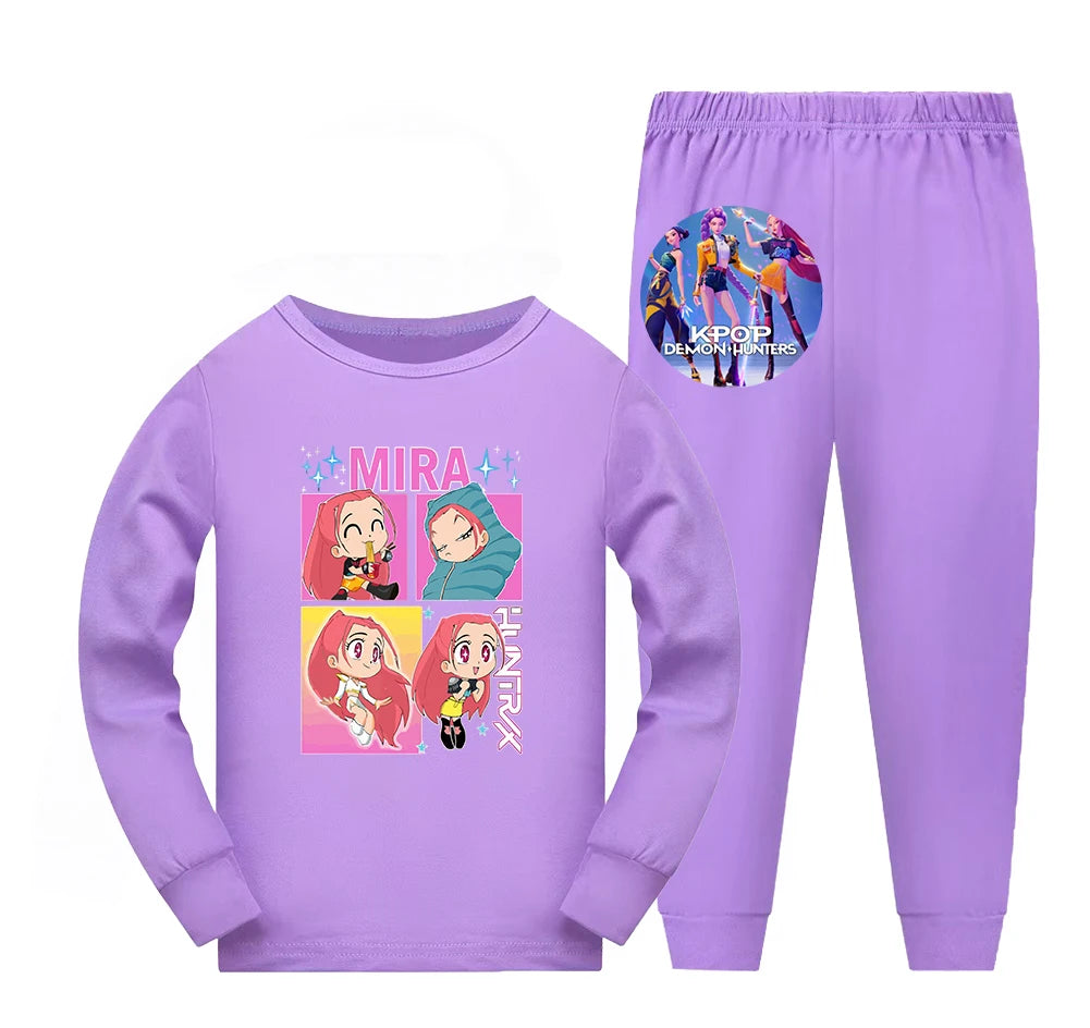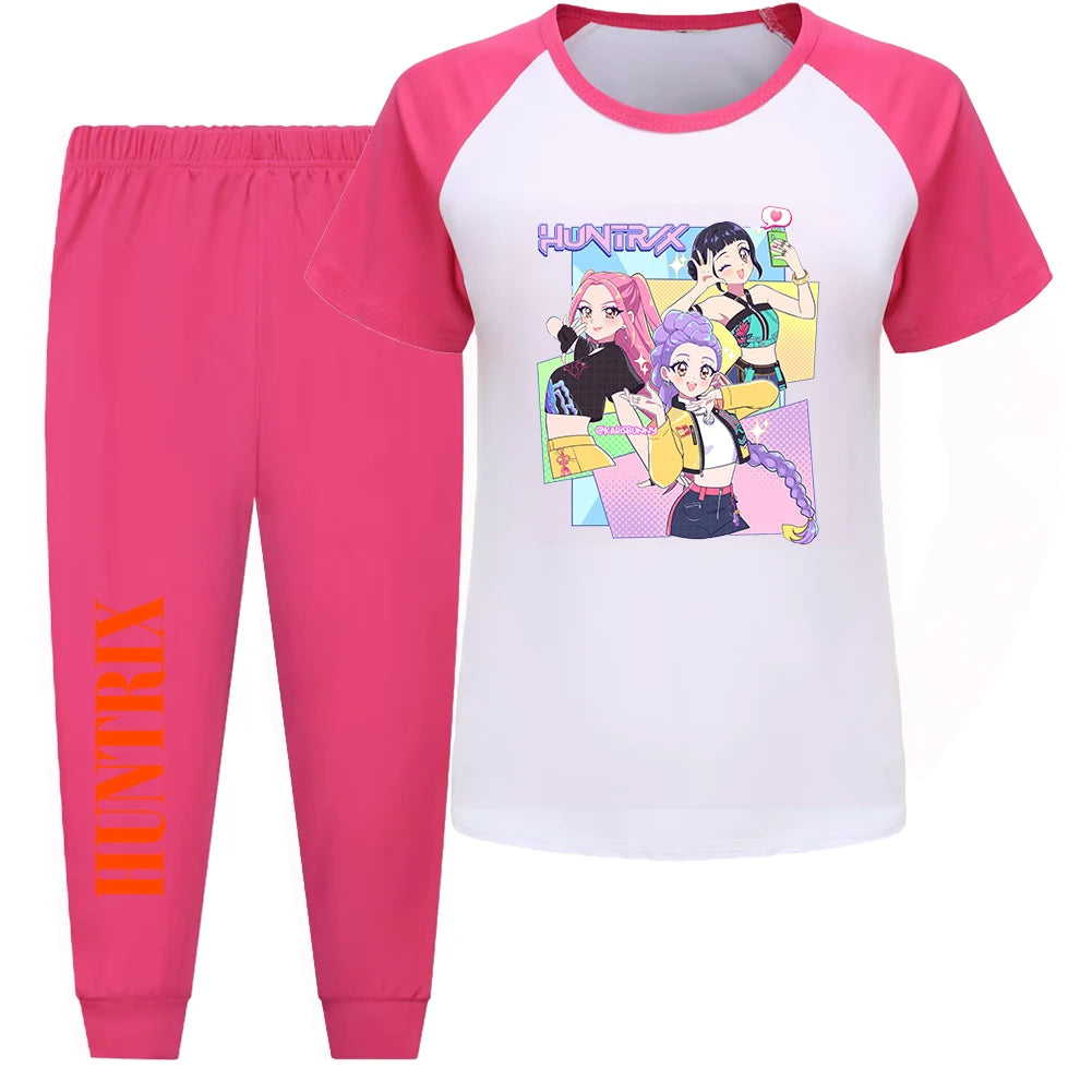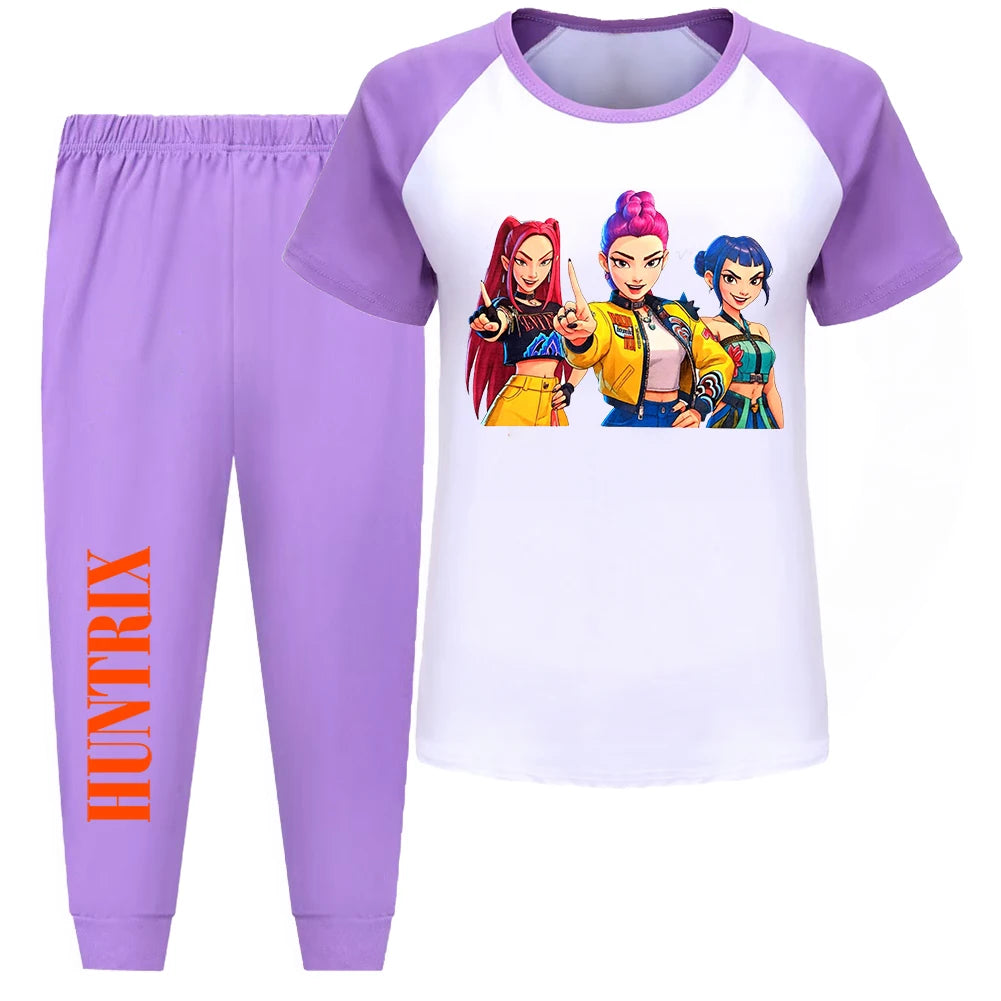 Dívčí pohodlné pyžamo s potiskem Demon Huntrix s krátkým rukávem. Více druhů na výběr.