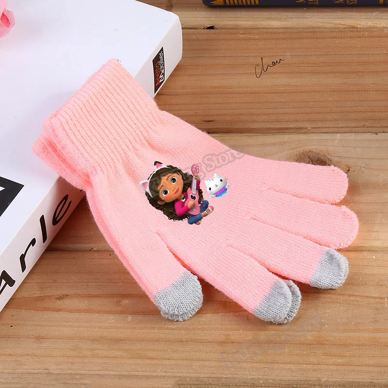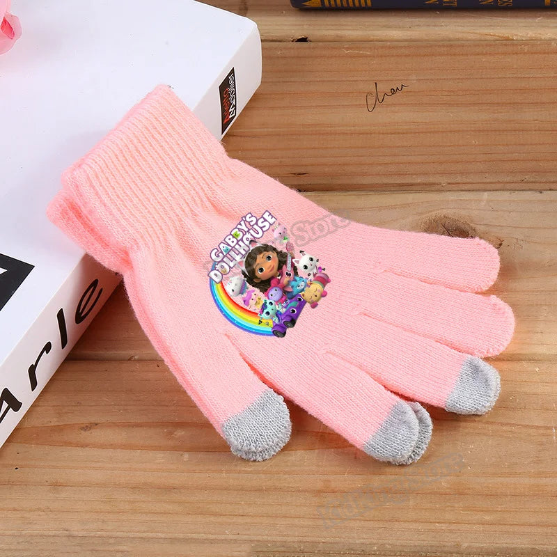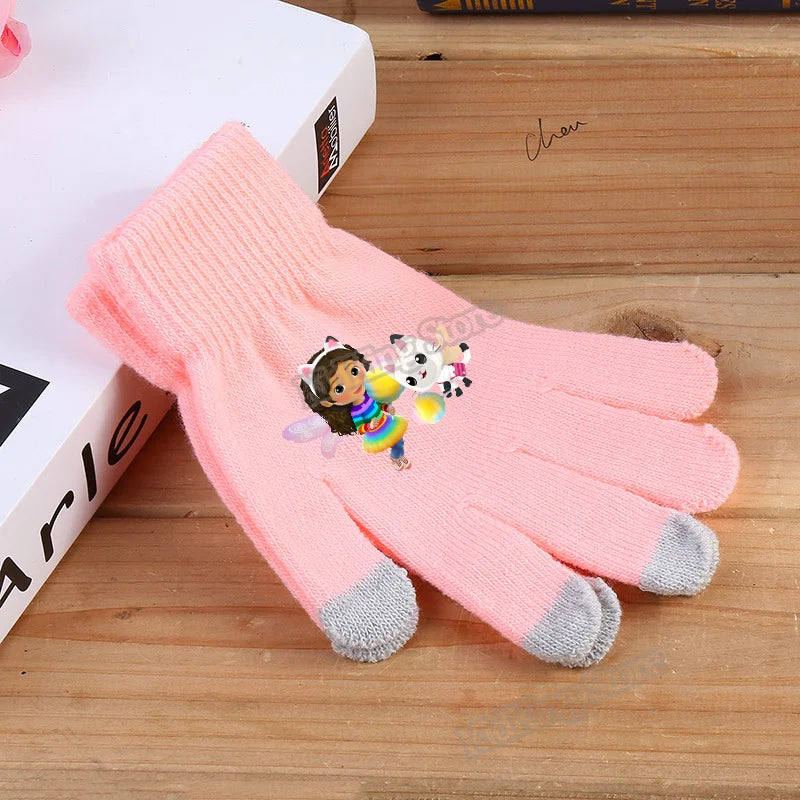 Dívčí rukavice s potiskem Gabbys Dollhouse v růžové barvě.