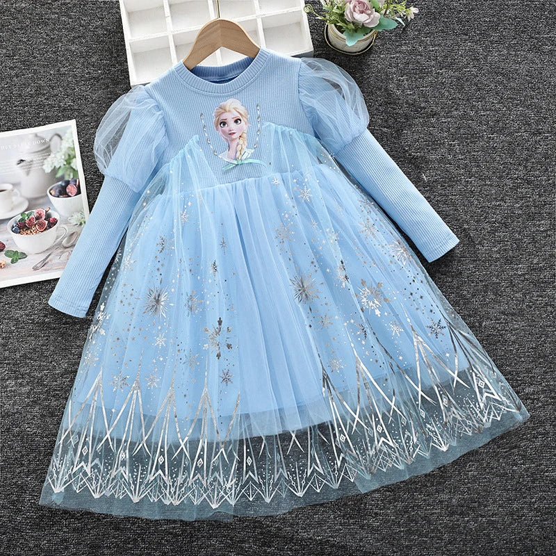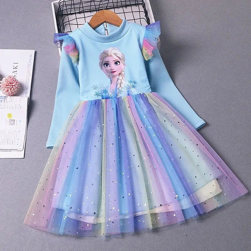 Dívčí šaty s potiskem Frozen s tutu sukní a dlouhým rukávem. Více barev na výběr.