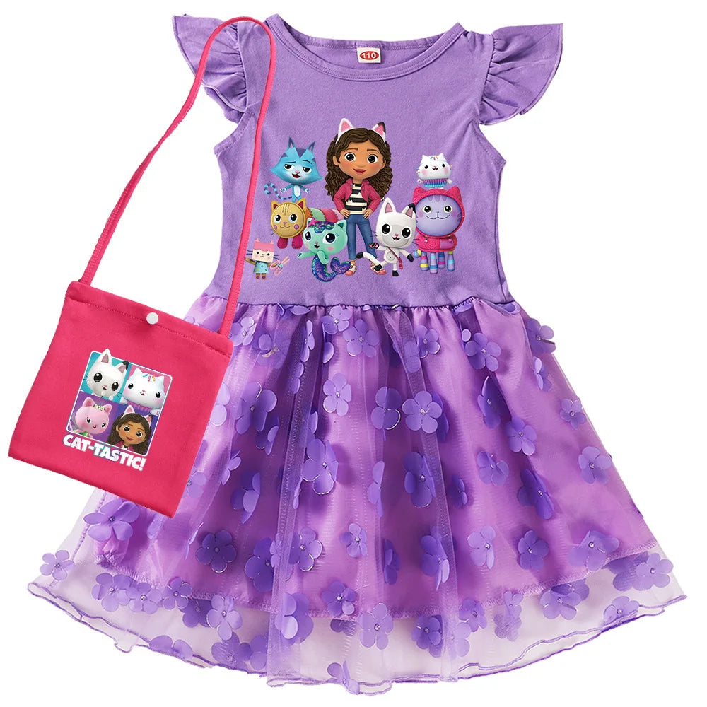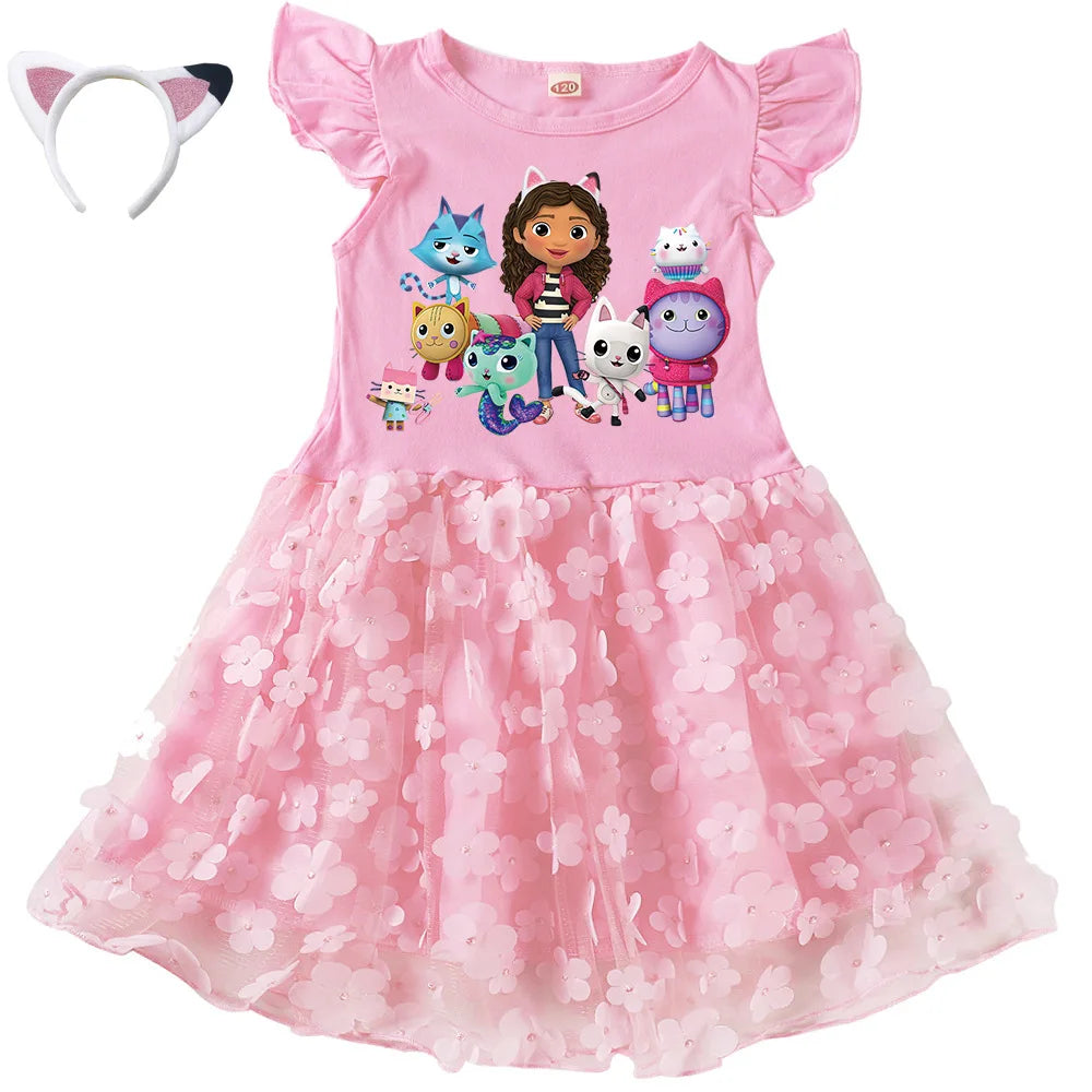 Dívčí šaty s potiskem Gabby Dollhouse s krátkým rukávem a tutu sukní. Více barev na výběr,