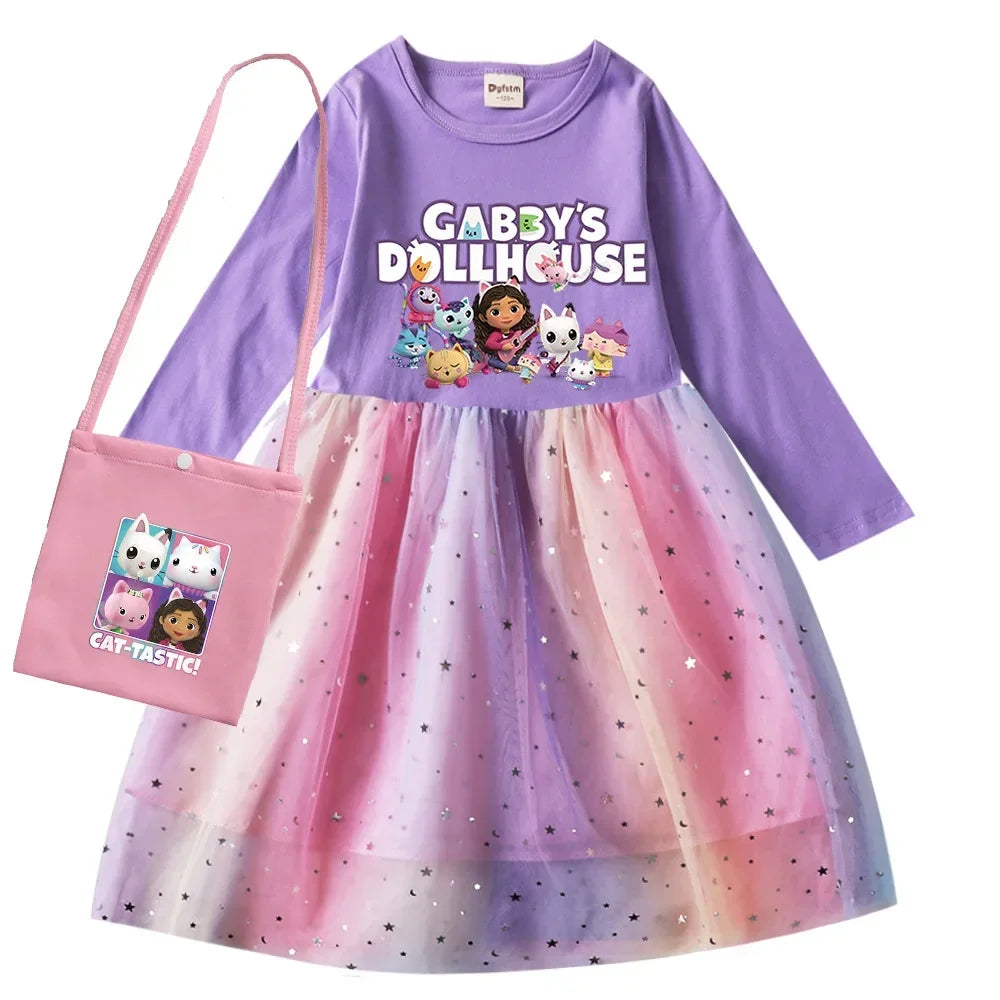 Dívčí šaty s potiskem Gabbys Dollhouse s dlouhým rukávem s tutu sukní. Více druhů na výběr.