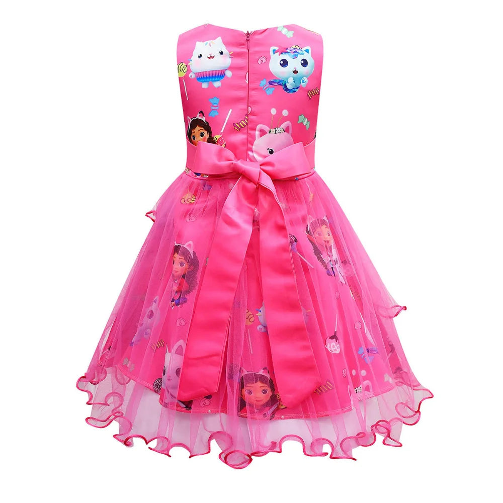 Dívčí šaty s potiskem Gábinin kouzelný domek a tylovou sukní. Možnost setu s kabelkou. Více barev na výběr.