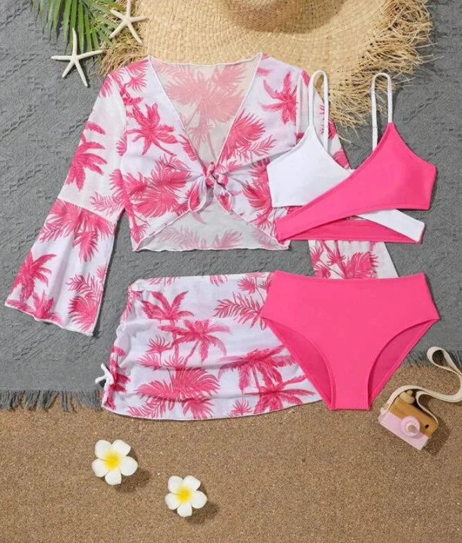 Dívčí roztomilý set bikin a přehozu. Více barev na výběr.