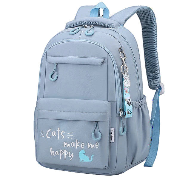 Dívčí školní batoh s textem "Cats make me happy" ve více barvách na výběr.