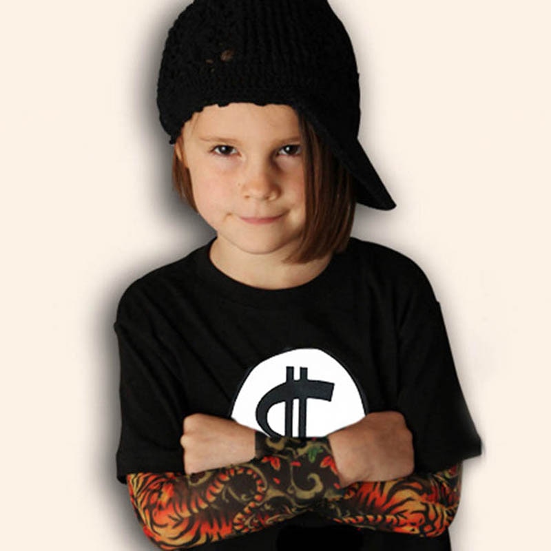 Originální a stylové triko v černé a bílé barvě s rukávy ve stylu potetovaných rukou tetováním.
