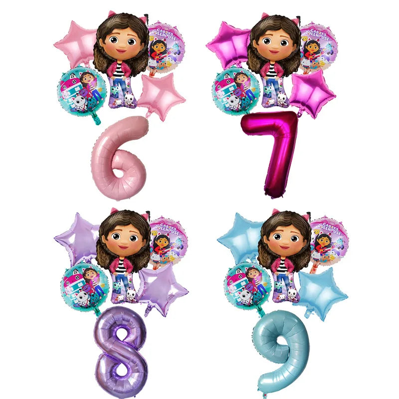 Doplňky na oslavu se vzorem Gabbys Dollhouse a číslem.