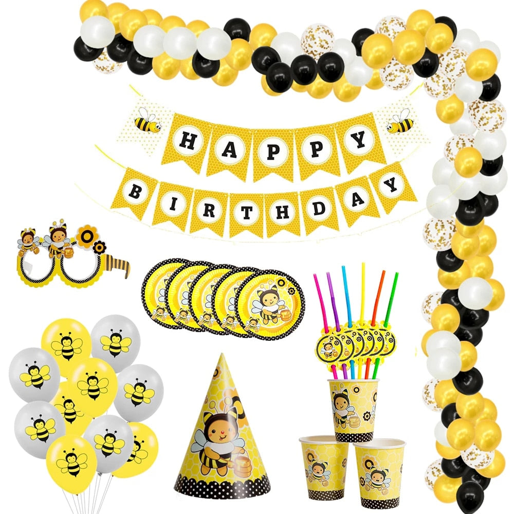 Doplňky na oslavu se vzorem včelky. Více ozdob na výběr.