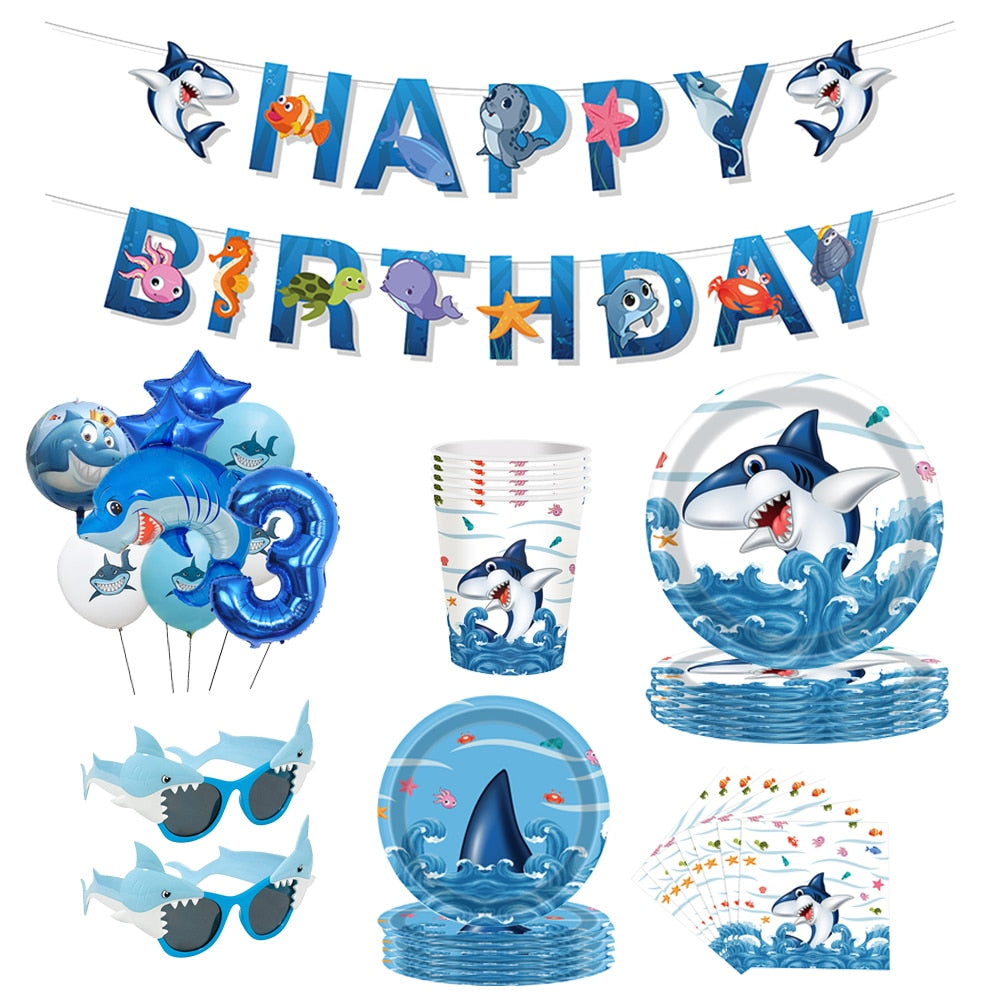 Doplňky na oslavu se vzorem žraloka. Více druhů na výběr.