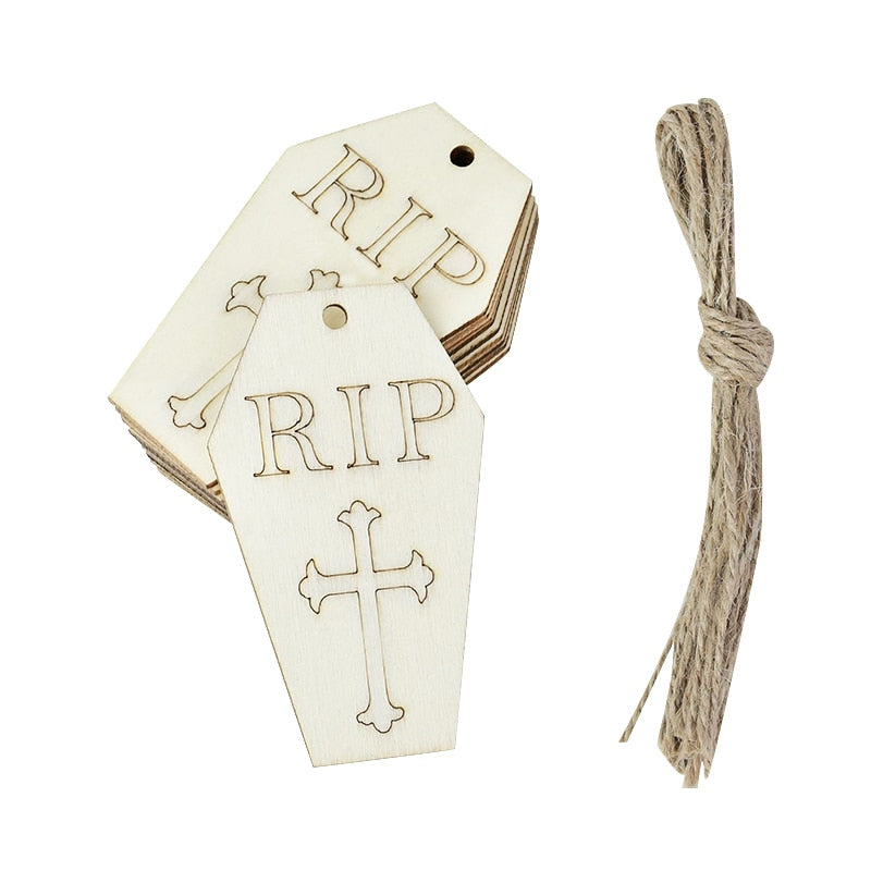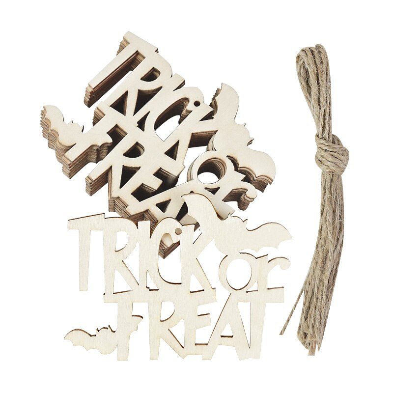Dřevěné bílé doplňky na Halloween. Balení obsahuje 10 ks.