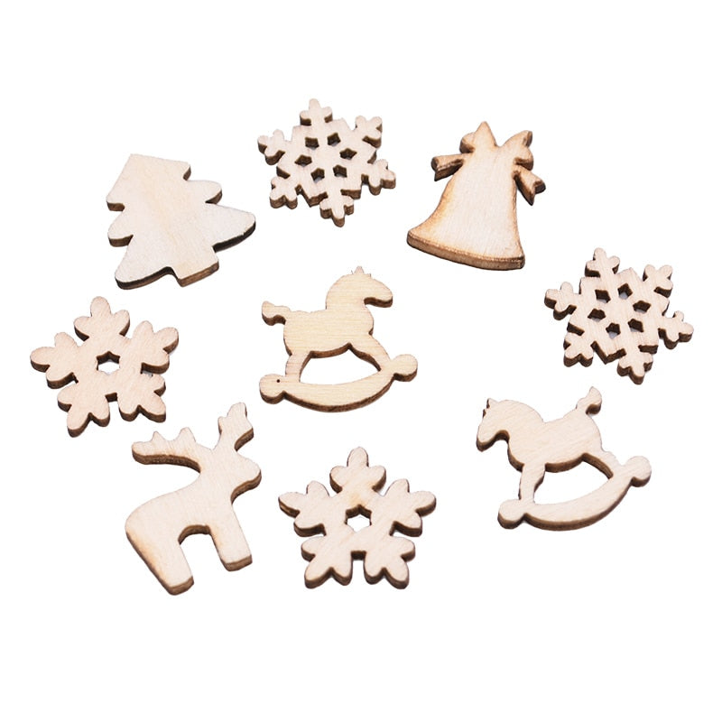 Dřevěné vánoční ozdoby mají mnoho využití. Balení obsahuje 100 ks.