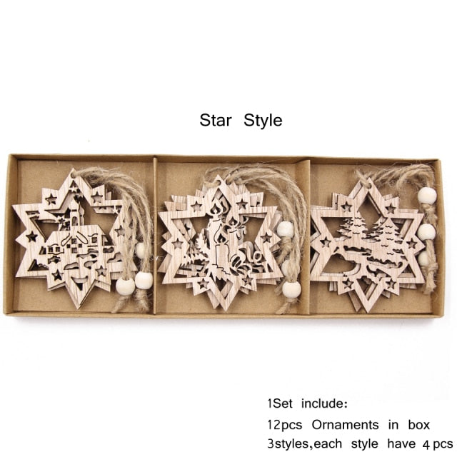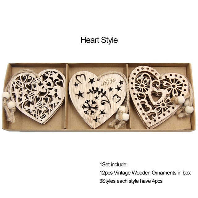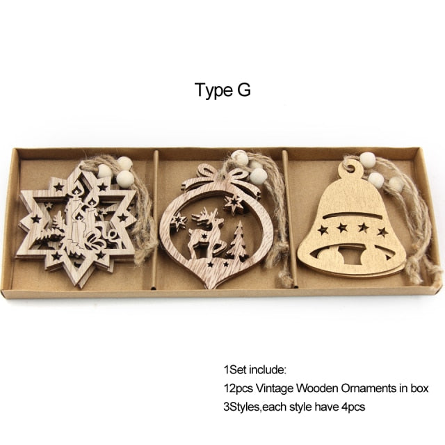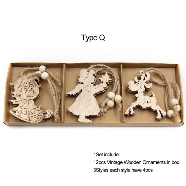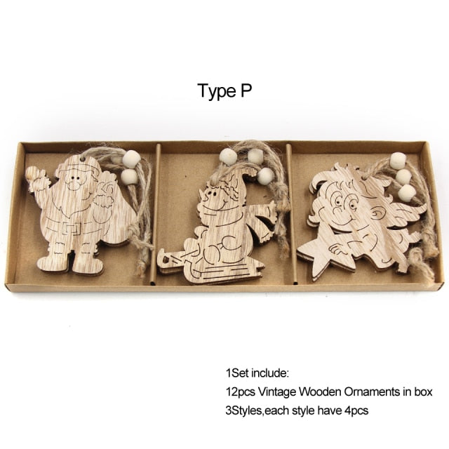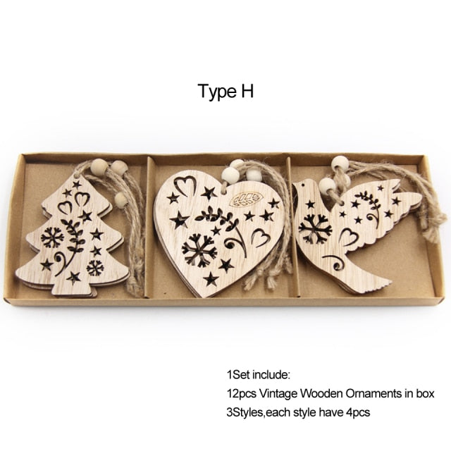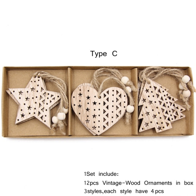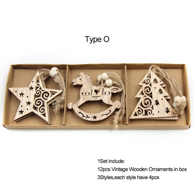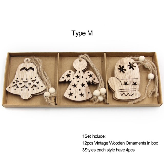 Vánoční dřevěné ozdoby na vánoční stromek. Balení obsahuje 12 kusů.