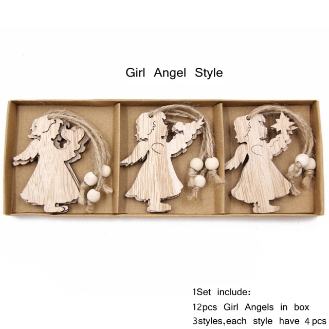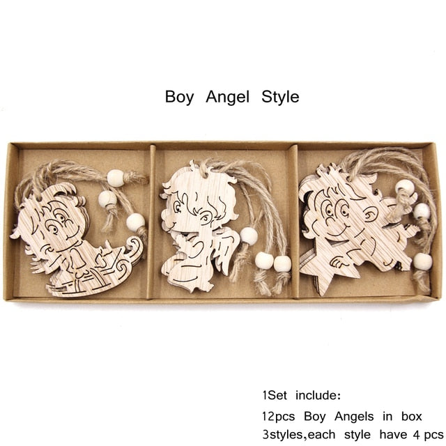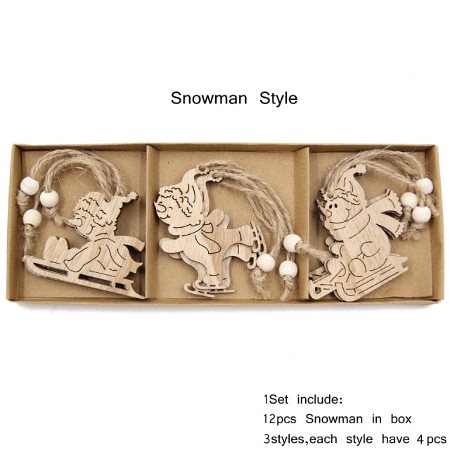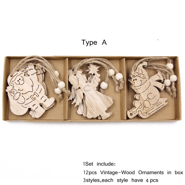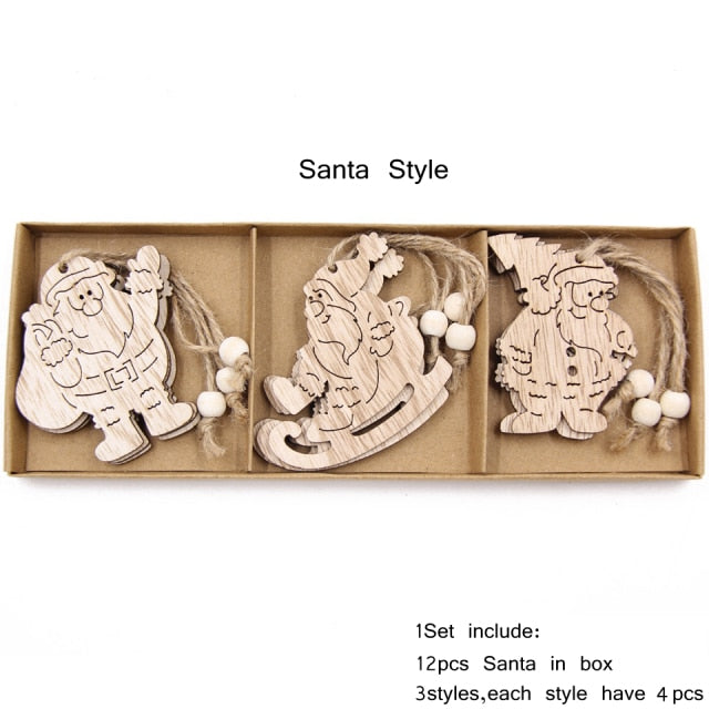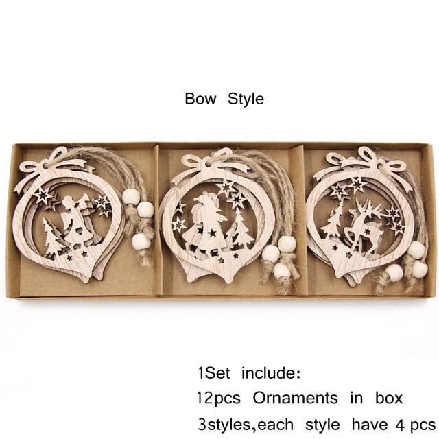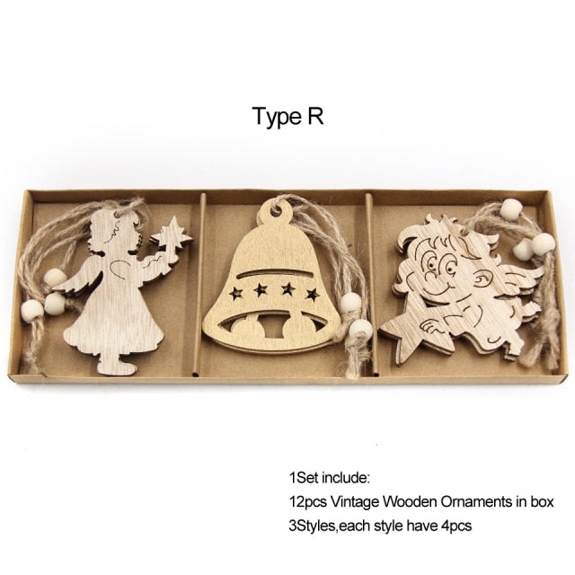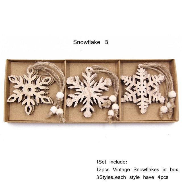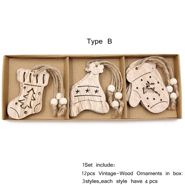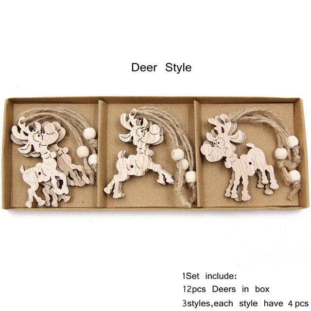 Vánoční dřevěné ozdoby na vánoční stromek. Balení obsahuje 12 kusů.