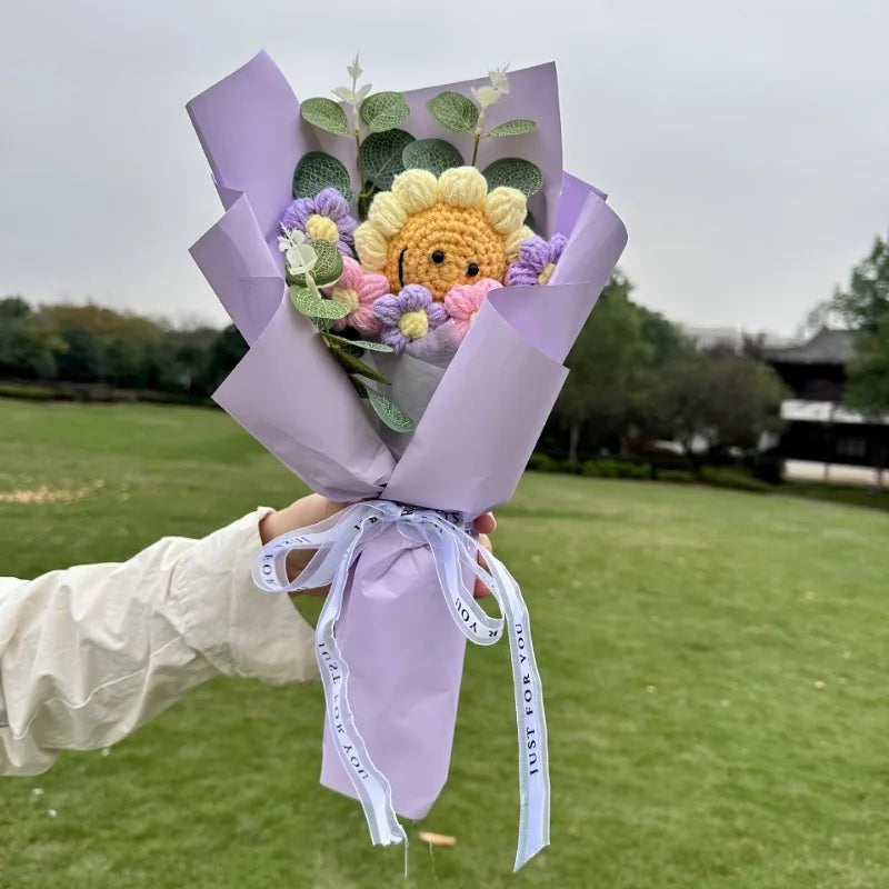 Háčkovaná kytice se slunečnicí. Více barev na výběr.