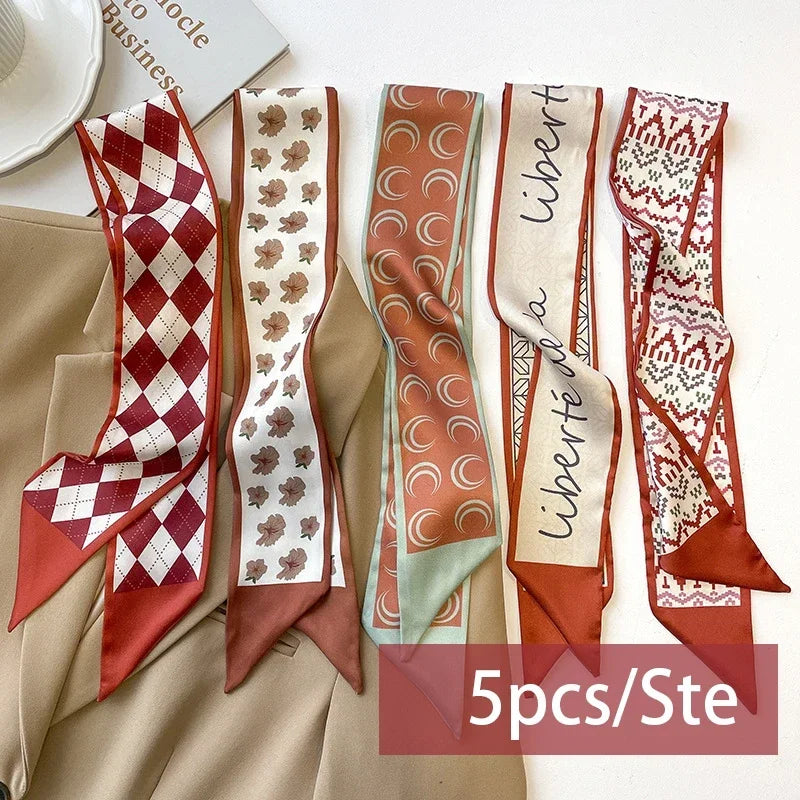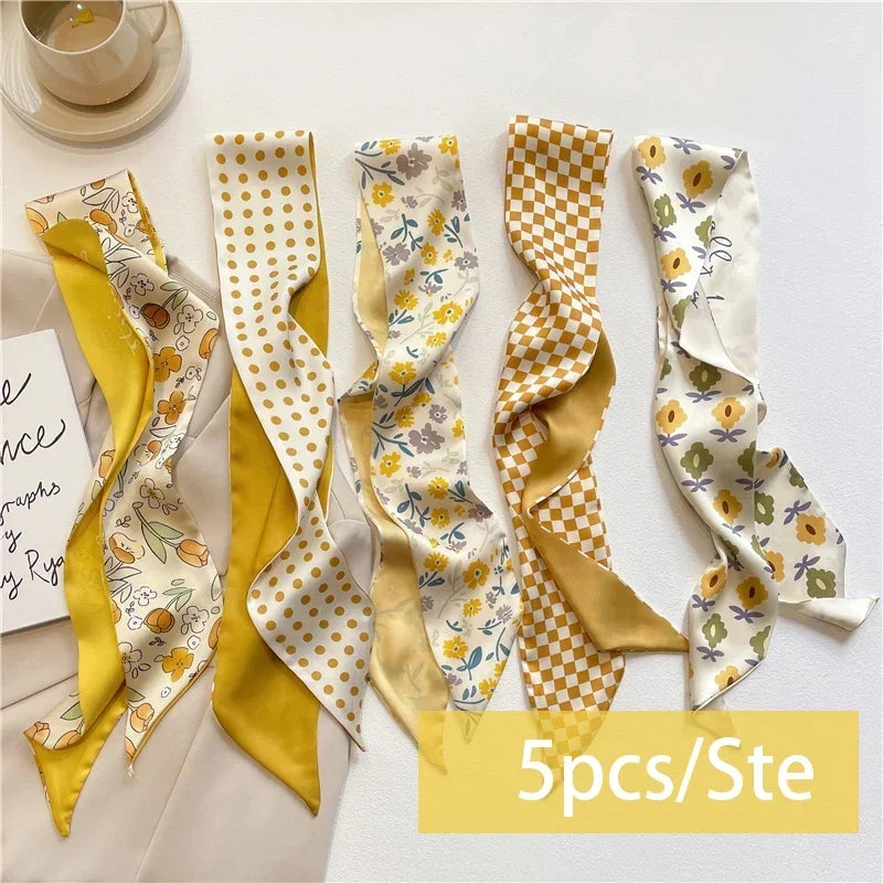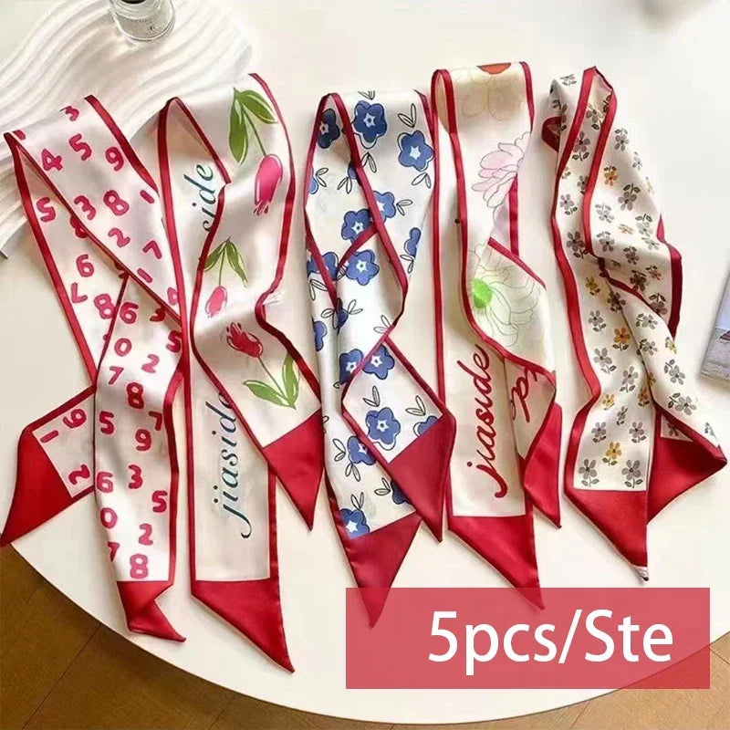 Hedvábný šátek se vzorem v setu po pěti kusech. Více barev na výběr.