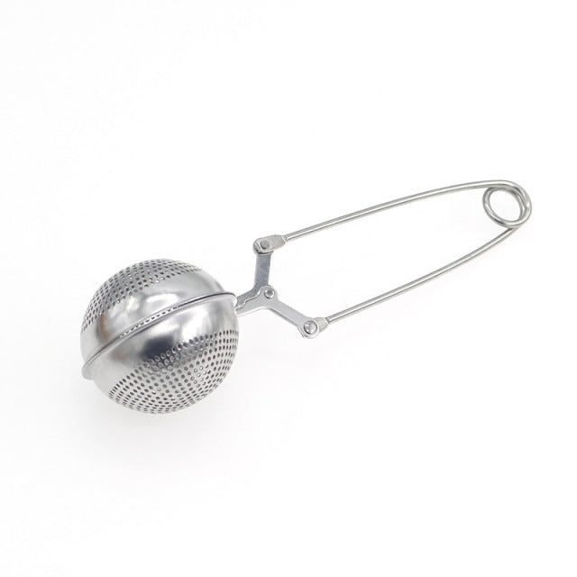 Infúzer na čaj z nerezové ocele v stříbrné nebo zlaté barvě.