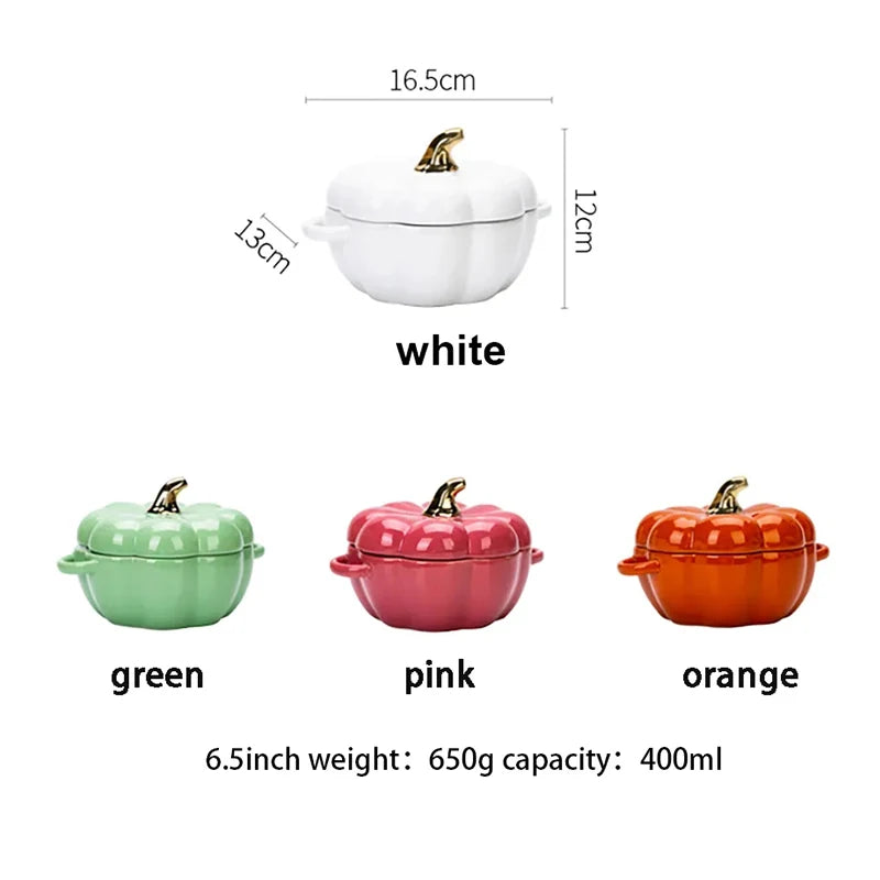 Keramická miska ve tvaru dýně v oranžové, zelené nebo bílé barvě.