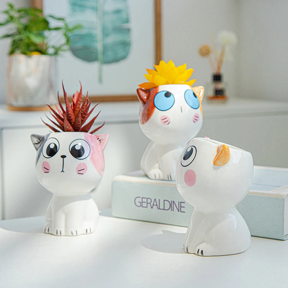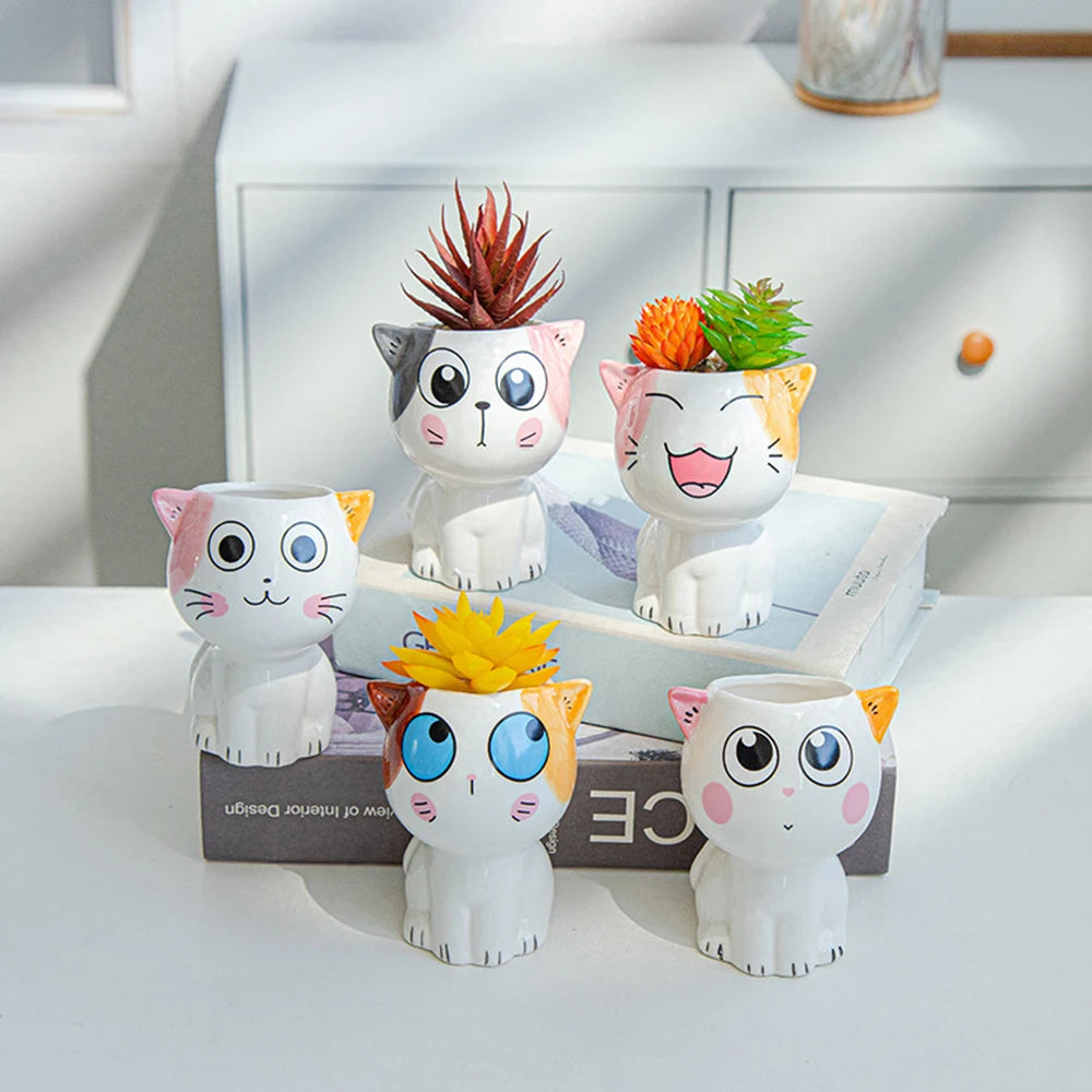 Keramický roztomilý květináč ve tvaru koček. Více druhů na výběr.