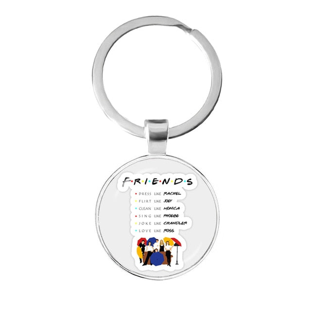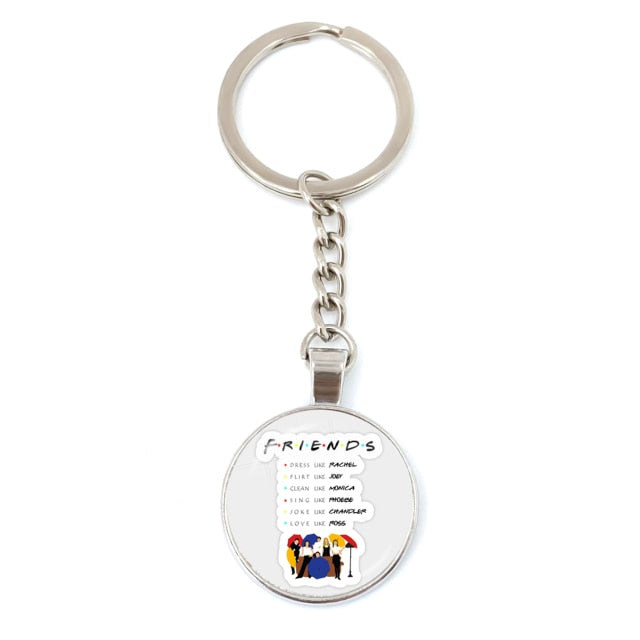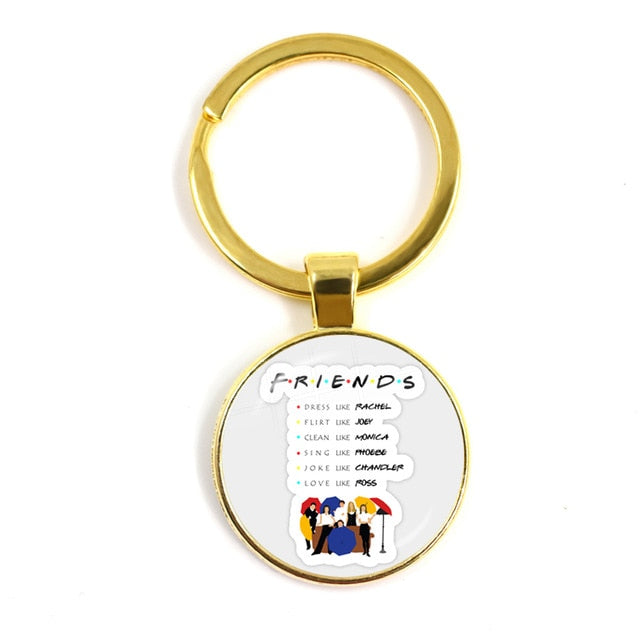 Kulatá klíčenka ze vzorem ze seriálu Přátelé / Friends. Více stylů na výběr.