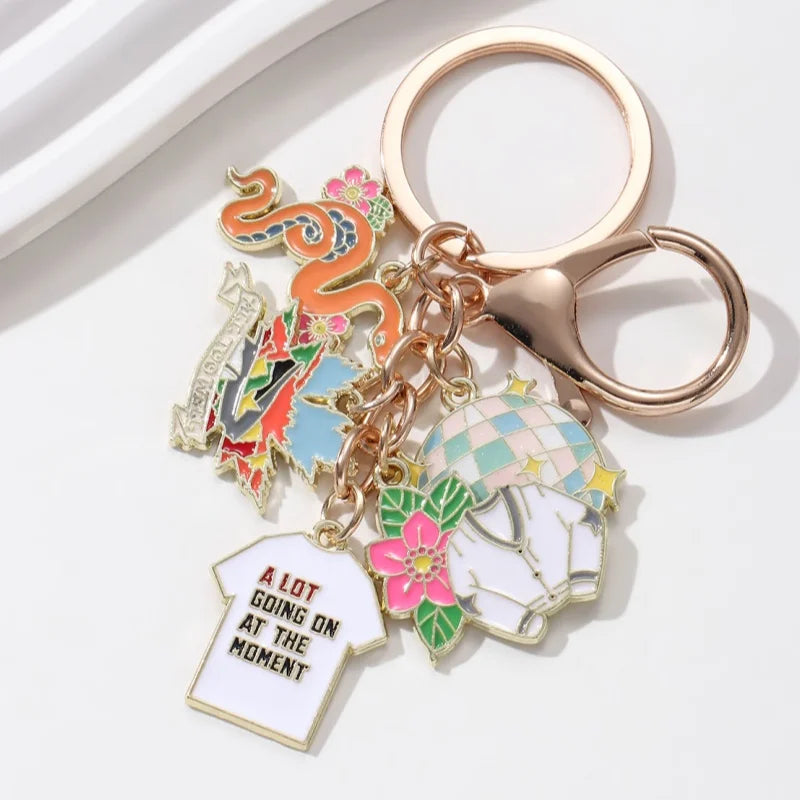 Klíčenka ve stylu Taylor Swift ve zlaté barvě.