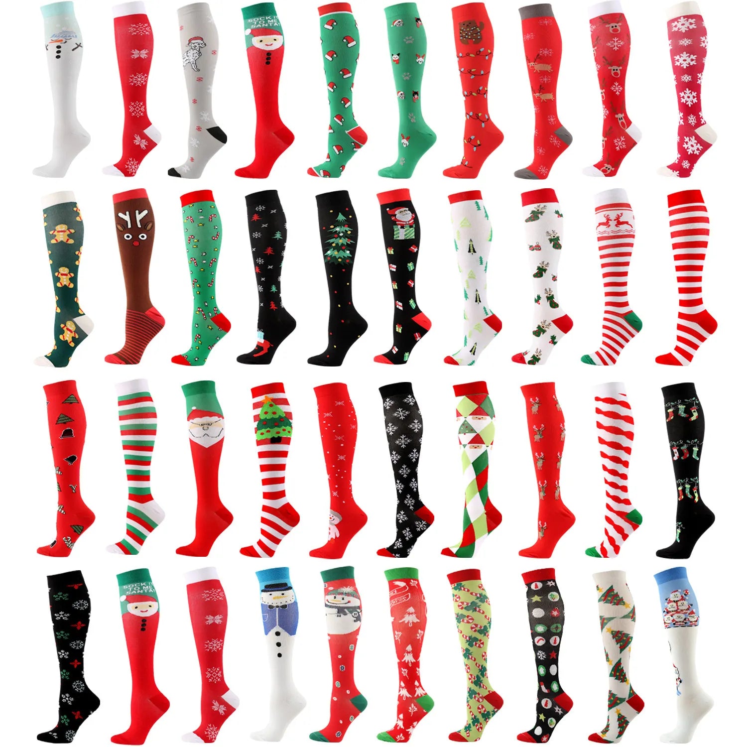 Kompresní stylové vánoční vysoké ponožky. Více barev na výběr.